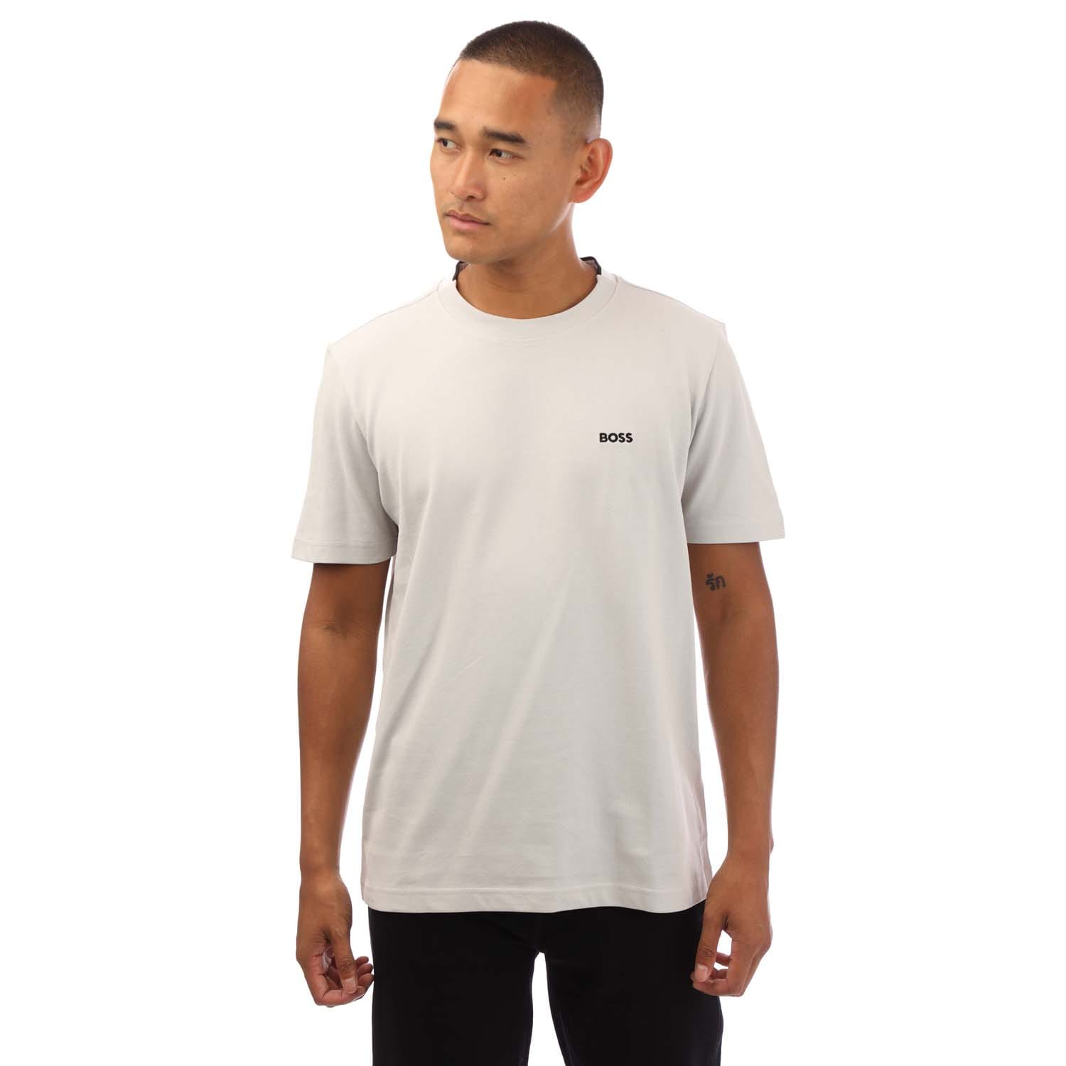 Mens BOSS Taddy Cotton-Piqué T-Shirt with jacquard woven back collar in light / pastel grey