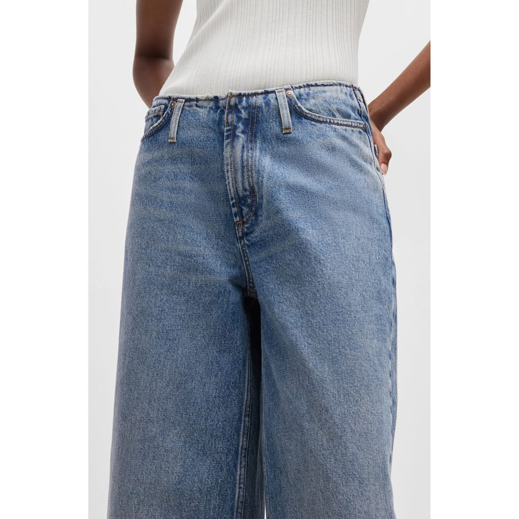 With a culotte length and relaxed fit, these HUGO Womenswear jeans create a modern silhouette. In rigid mid-blue denim with a clean waistband design.