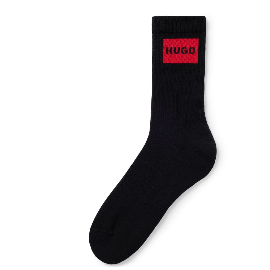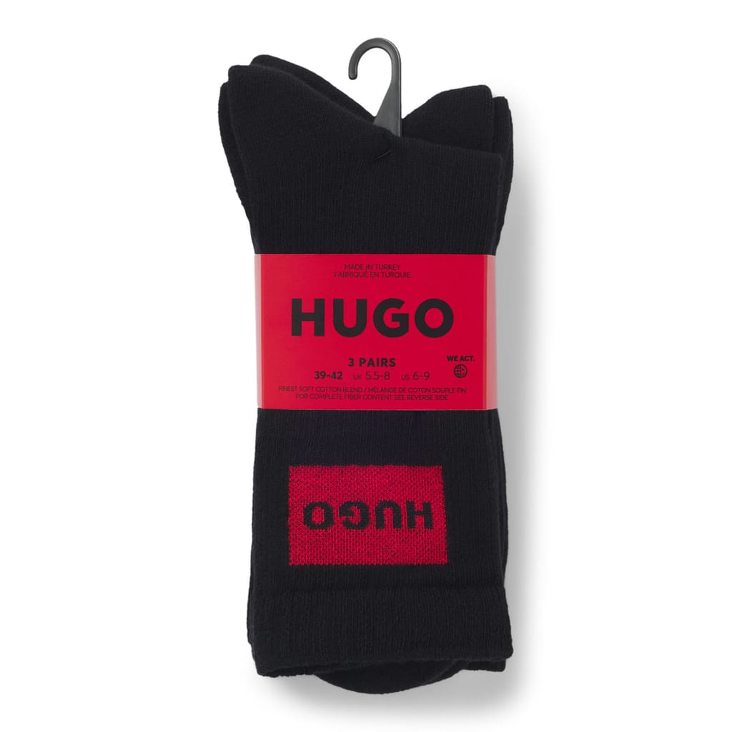 Mens HUGO Three-pack of short-length socks with red logo labels in black