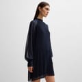Womens BOSS Dolumi Plissé-pleat dress with high neckline in dark blue