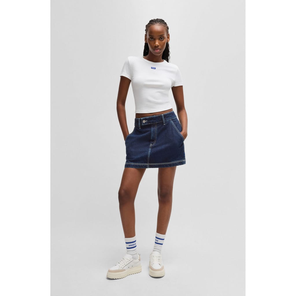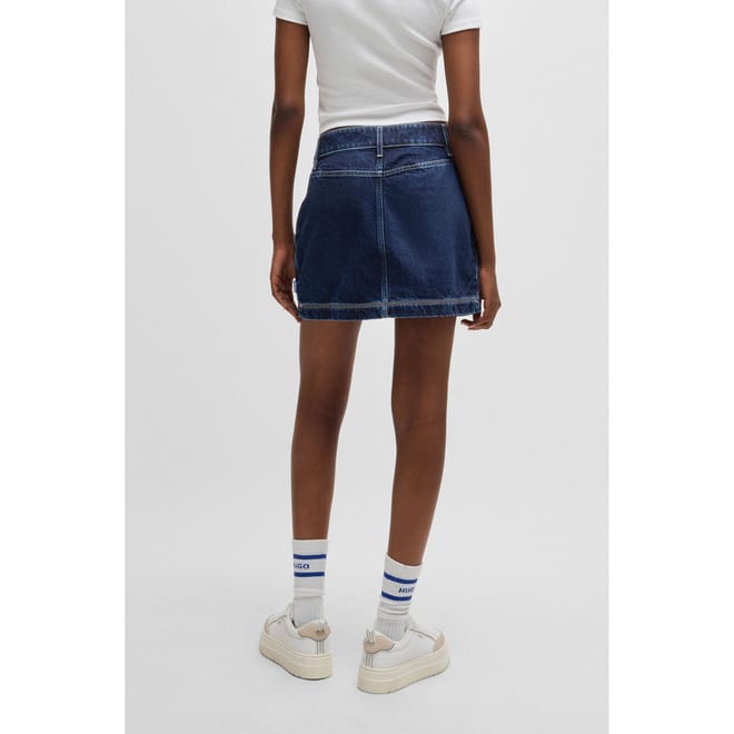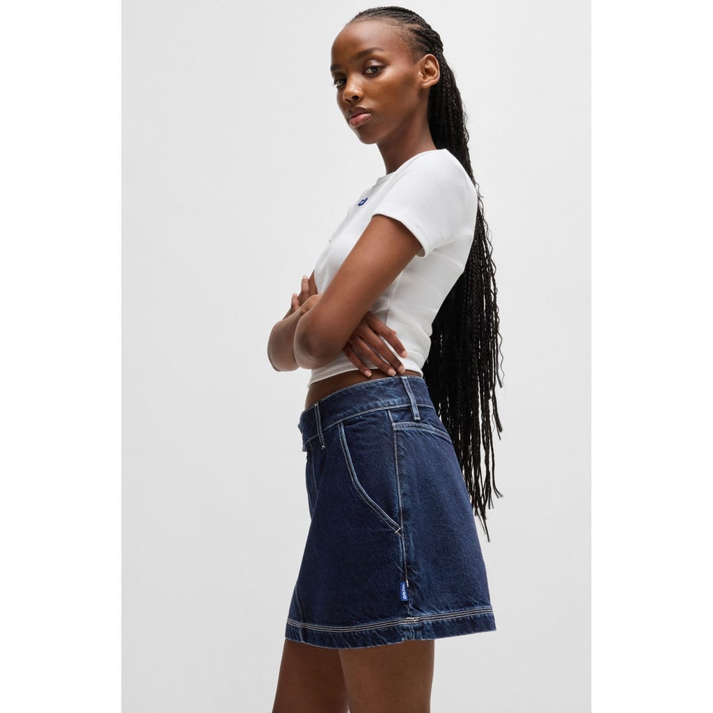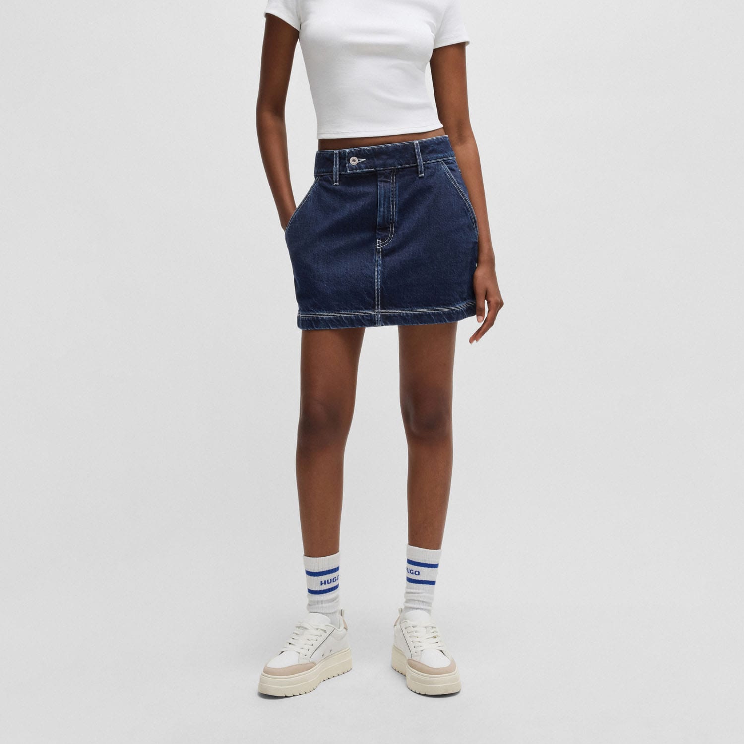 A mini skirt with contrast topstitching and a high waistband by HUGO Womenswear. This piece is crafted in cotton denim with a blue tone.