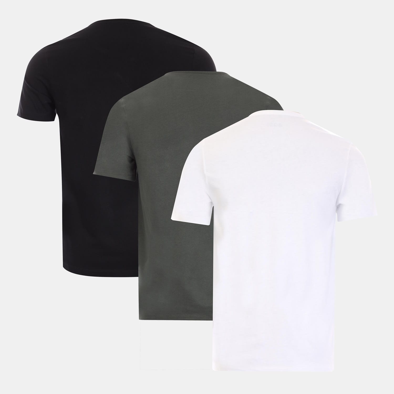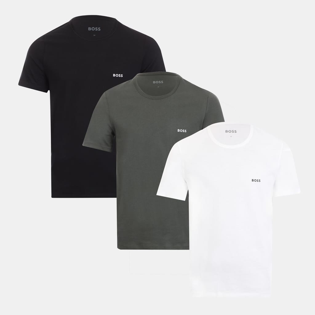 Mens BOSS Classic Three Pack of Cotton Underwear T-Shirts with Logos in white / green