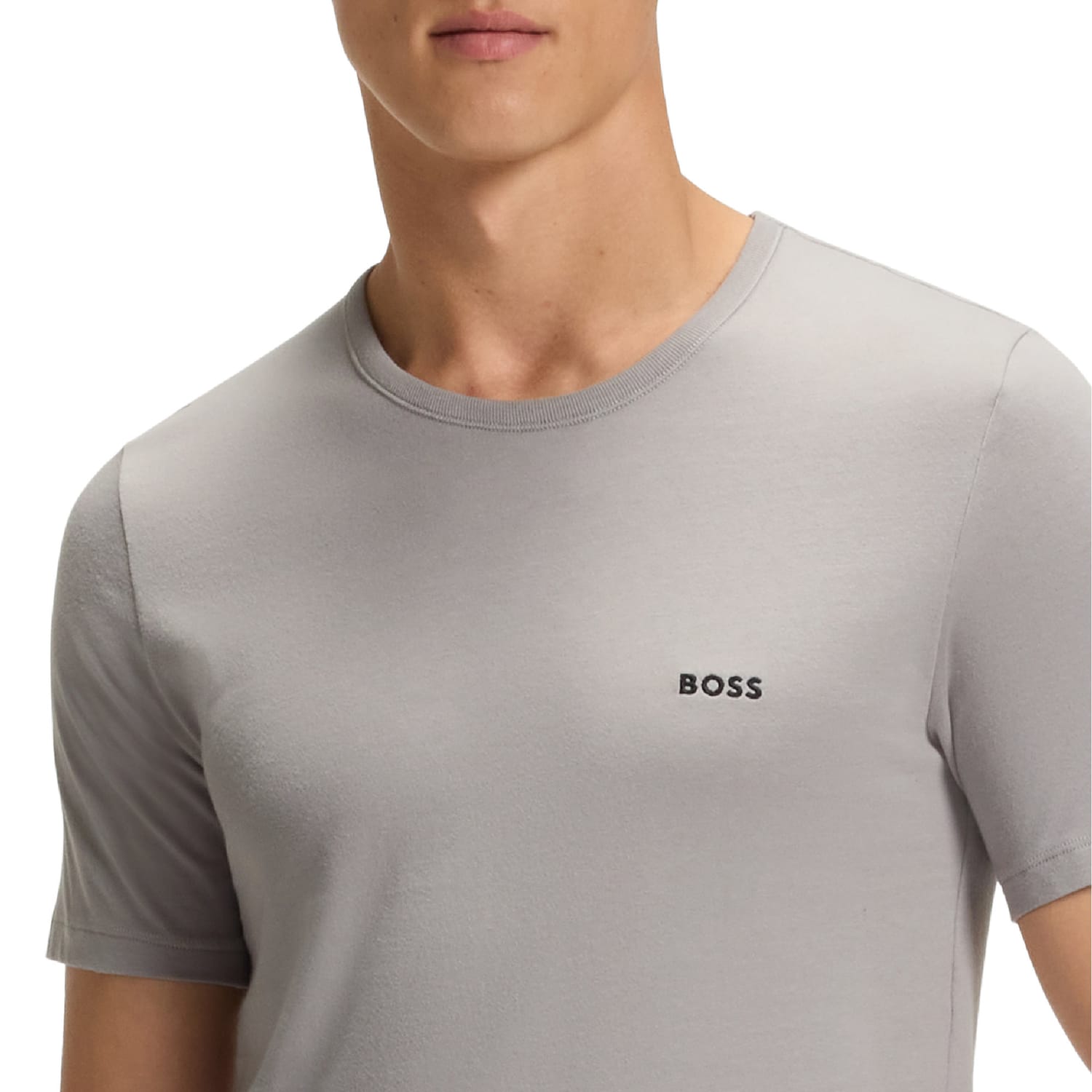 Mens BOSS Three-Pack of Underwear T-Shirts in Cotton Jersey in white / grey.