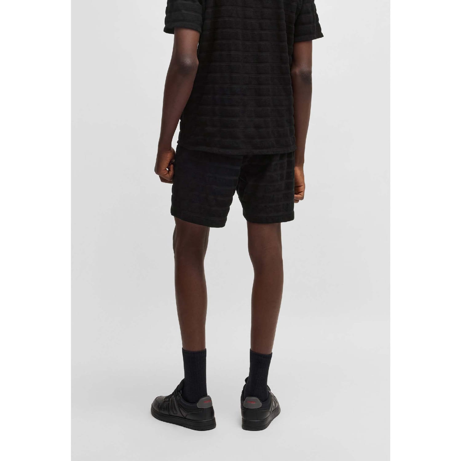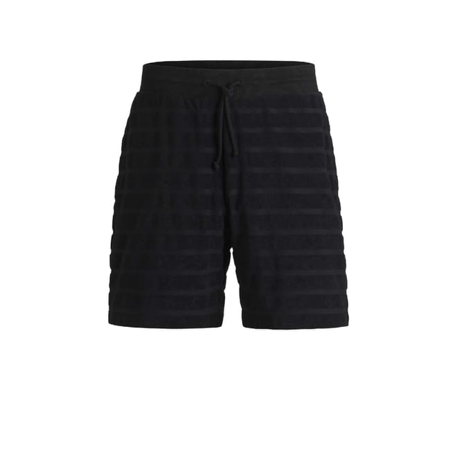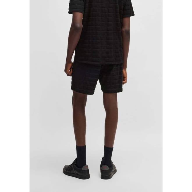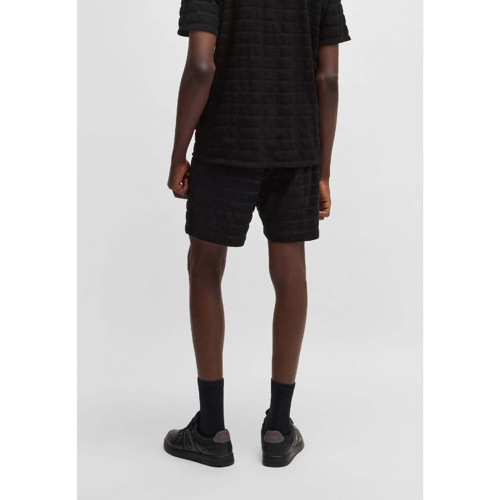 Mens HUGO Dutowel Striped Relaxed Fit Shorts in Cotton Towelling in black
