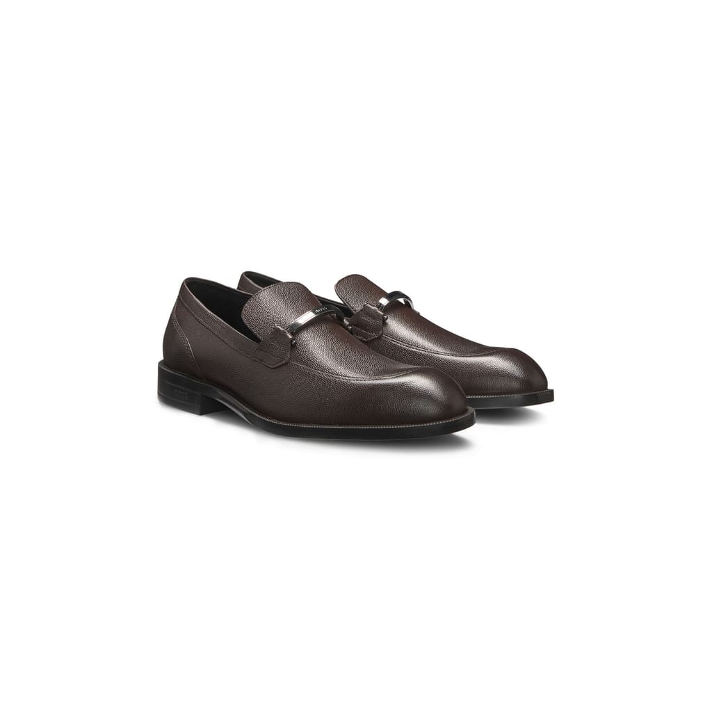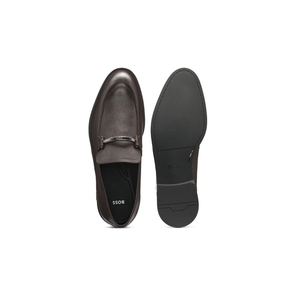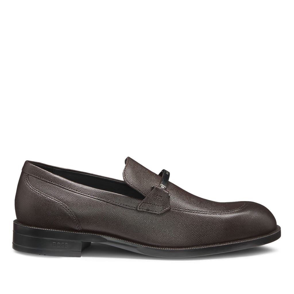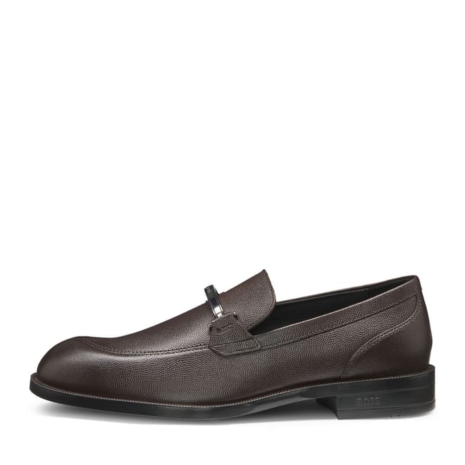 Mens BOSS Tayil Printed Leather Loafers with Branded Hardware Trim in dark brown