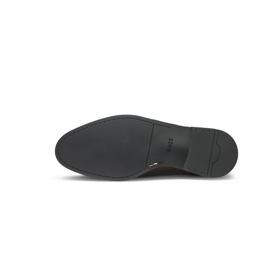 Sleek loafers in responsibly sourced leather with a printed pattern by BOSS Menswear. This pair has a branded hardware trim at the vamp.