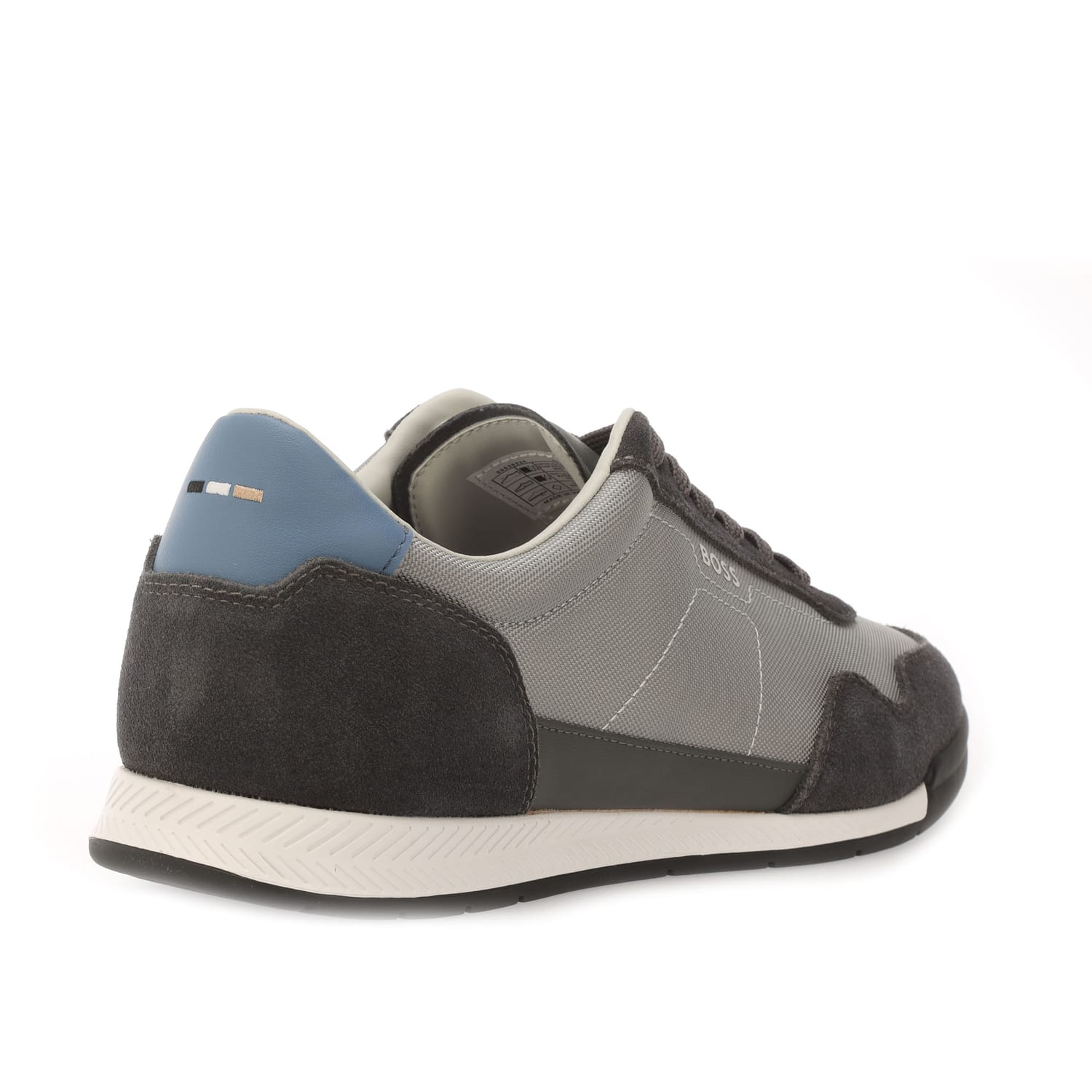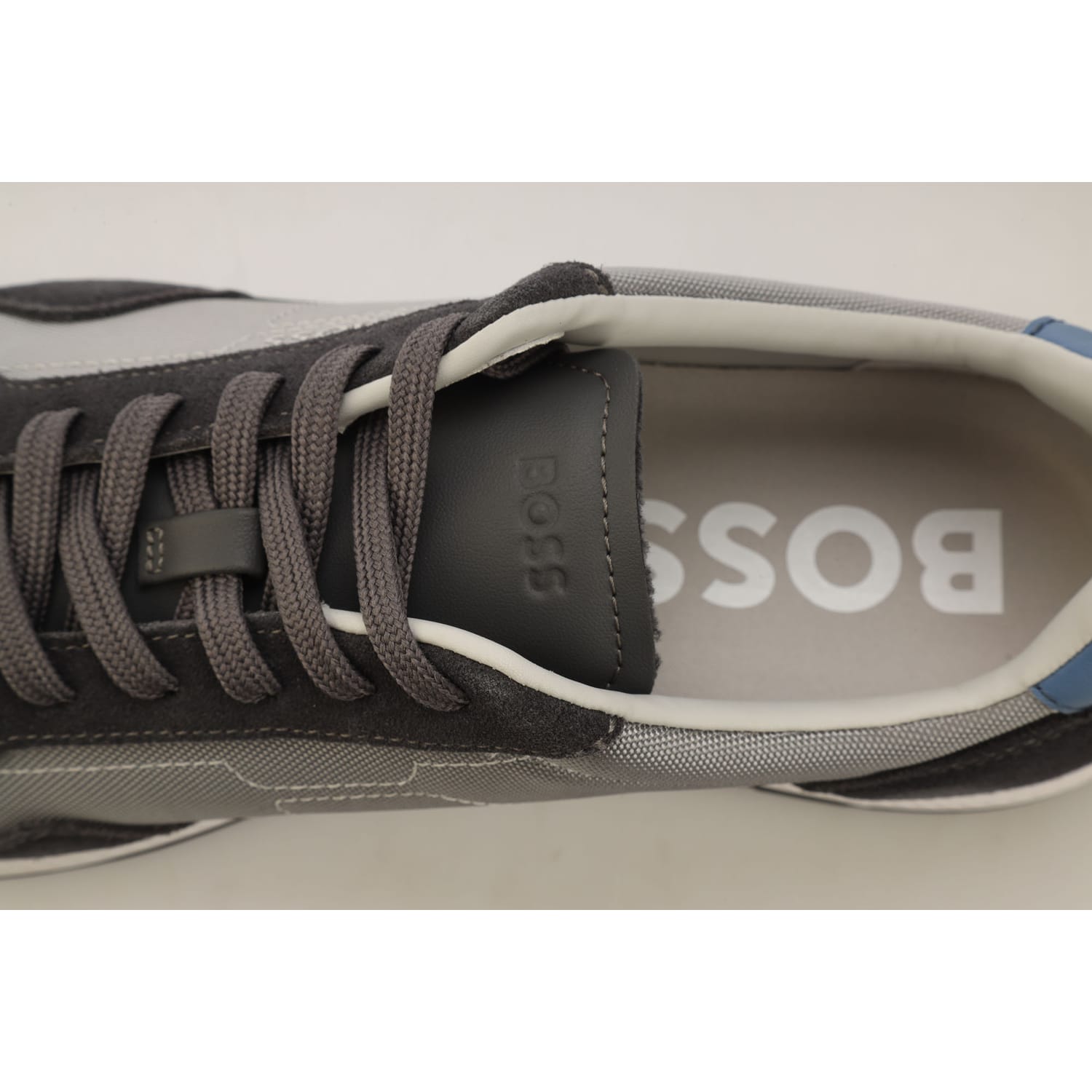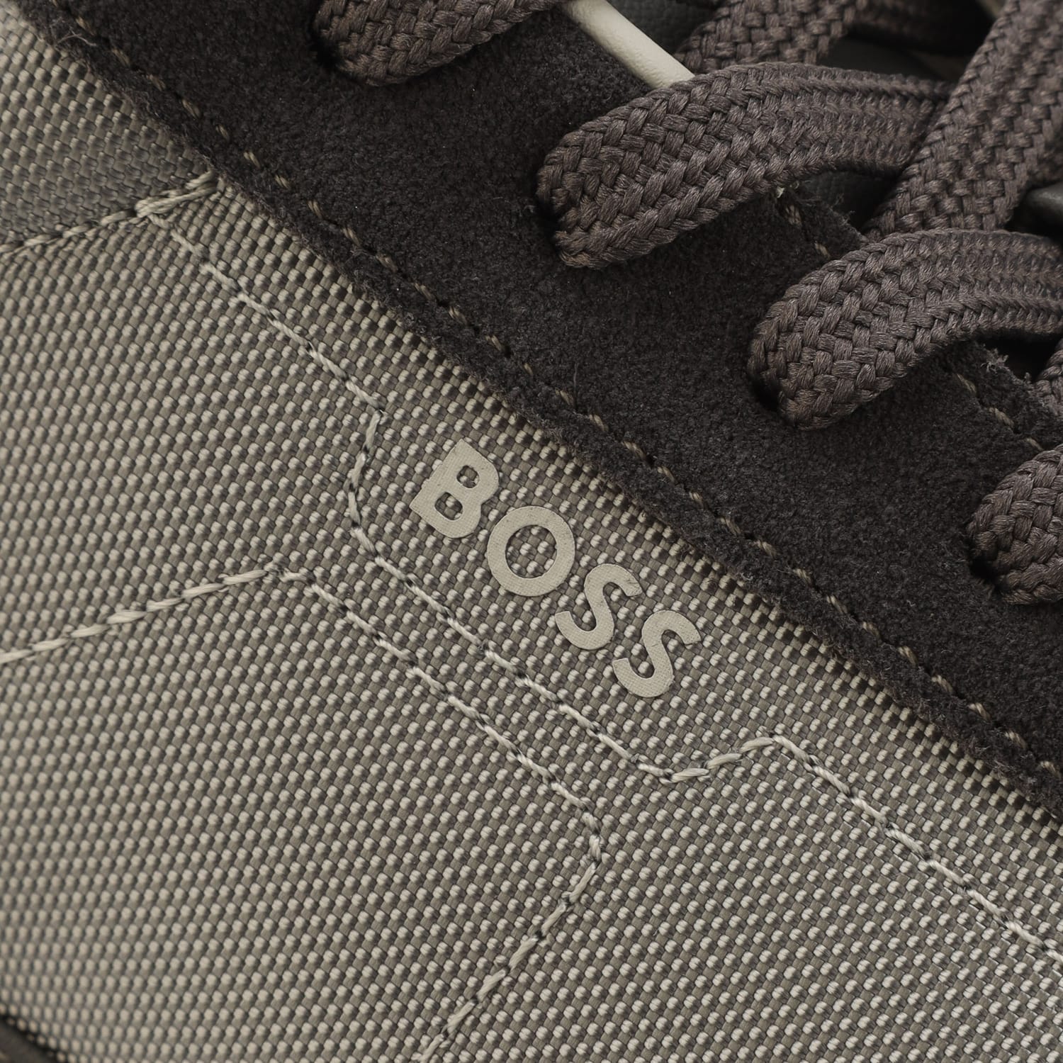 Mens BOSS Titanium Mixed-Material Lace-Up Trainers with Suede Trims in medium grey.