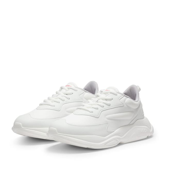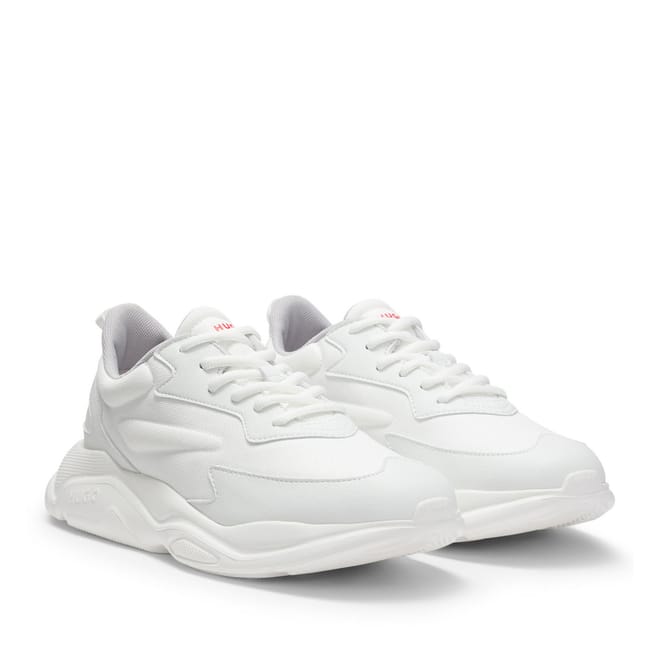 Mens HUGO Leon Logo Counter Trainers with Canvas Effect Fabric in open white