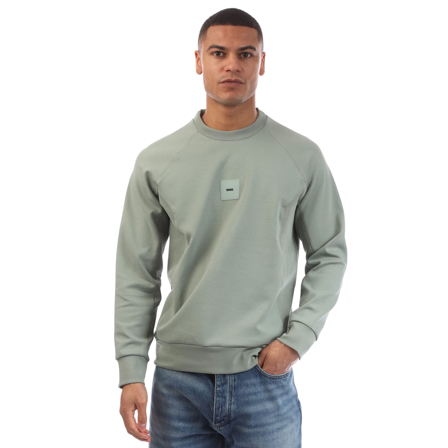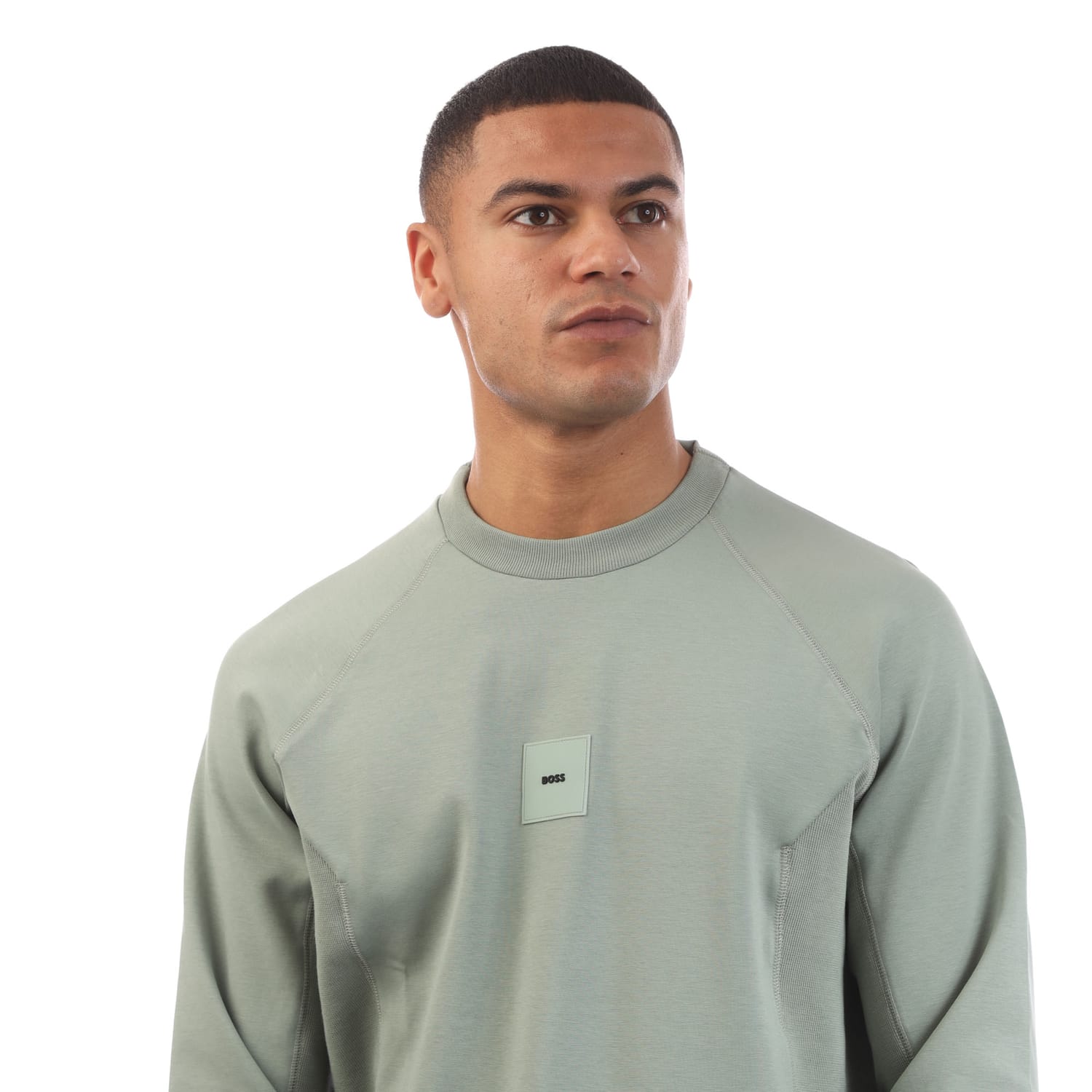Mens BOSS Salbo Rib Stretch Sweatshirt in a Cotton Blend in open green