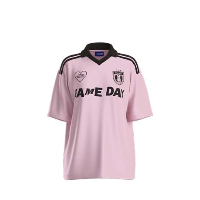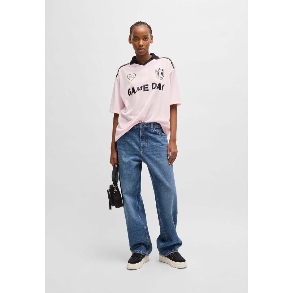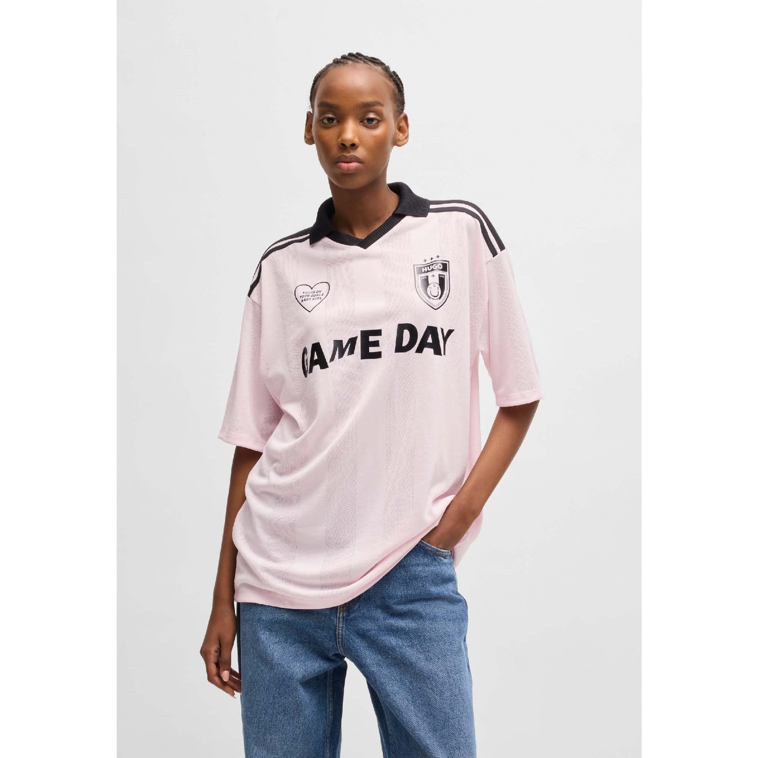 A sporty T-shirt by HUGO Womenswear. Featuring football-inspired prints and a Happy HUGO detail, this relaxed-fit top is made in breathable mesh.