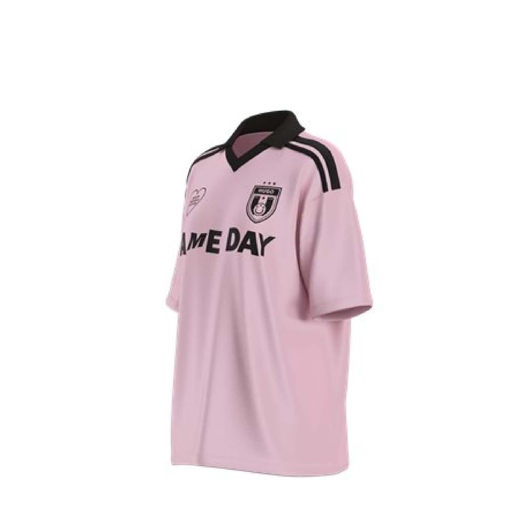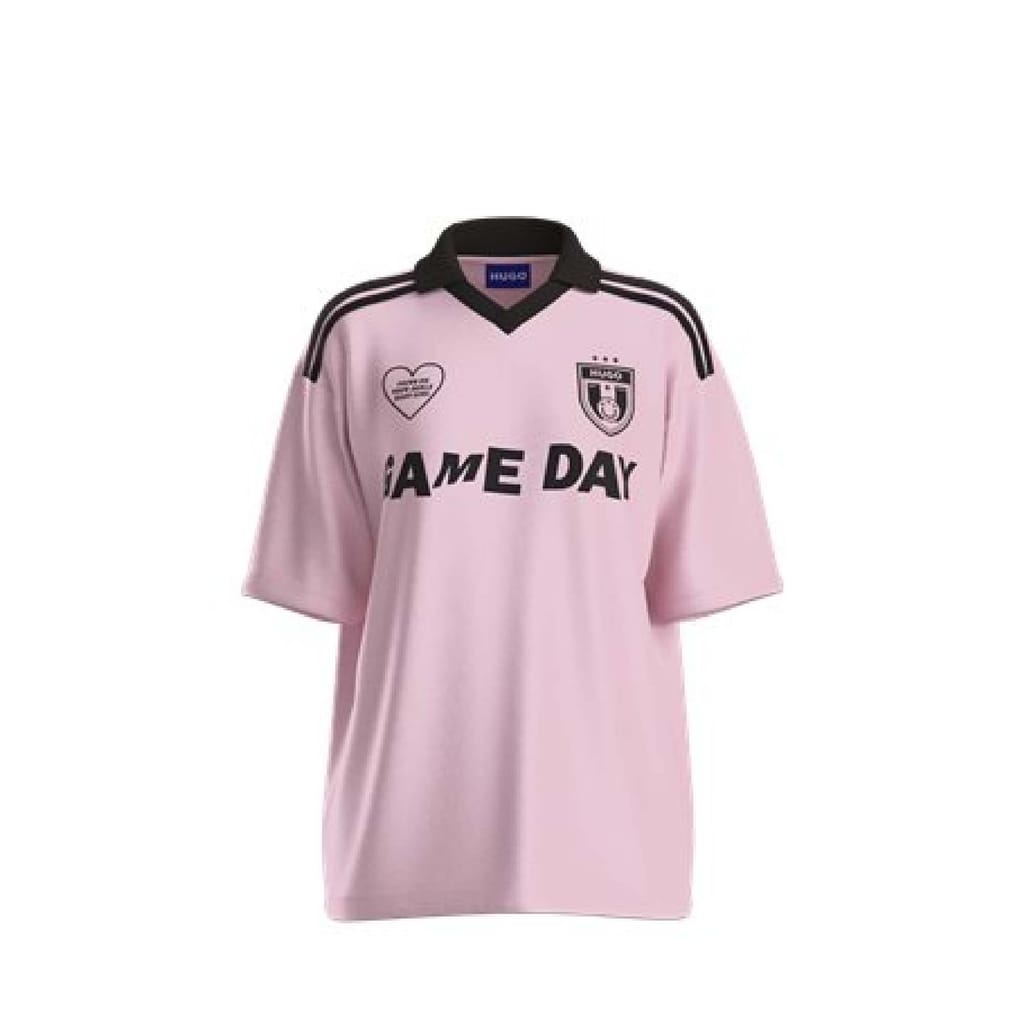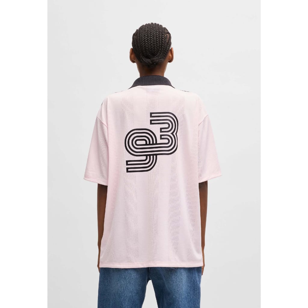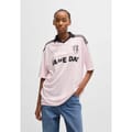 Womens HUGO Dila B Football Inspired T-Shirt in Jersey Jacquard in light pink