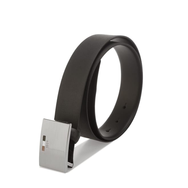 Mens BOSS Strom Icon Plaque Buckle Belt in Italian Leather in black