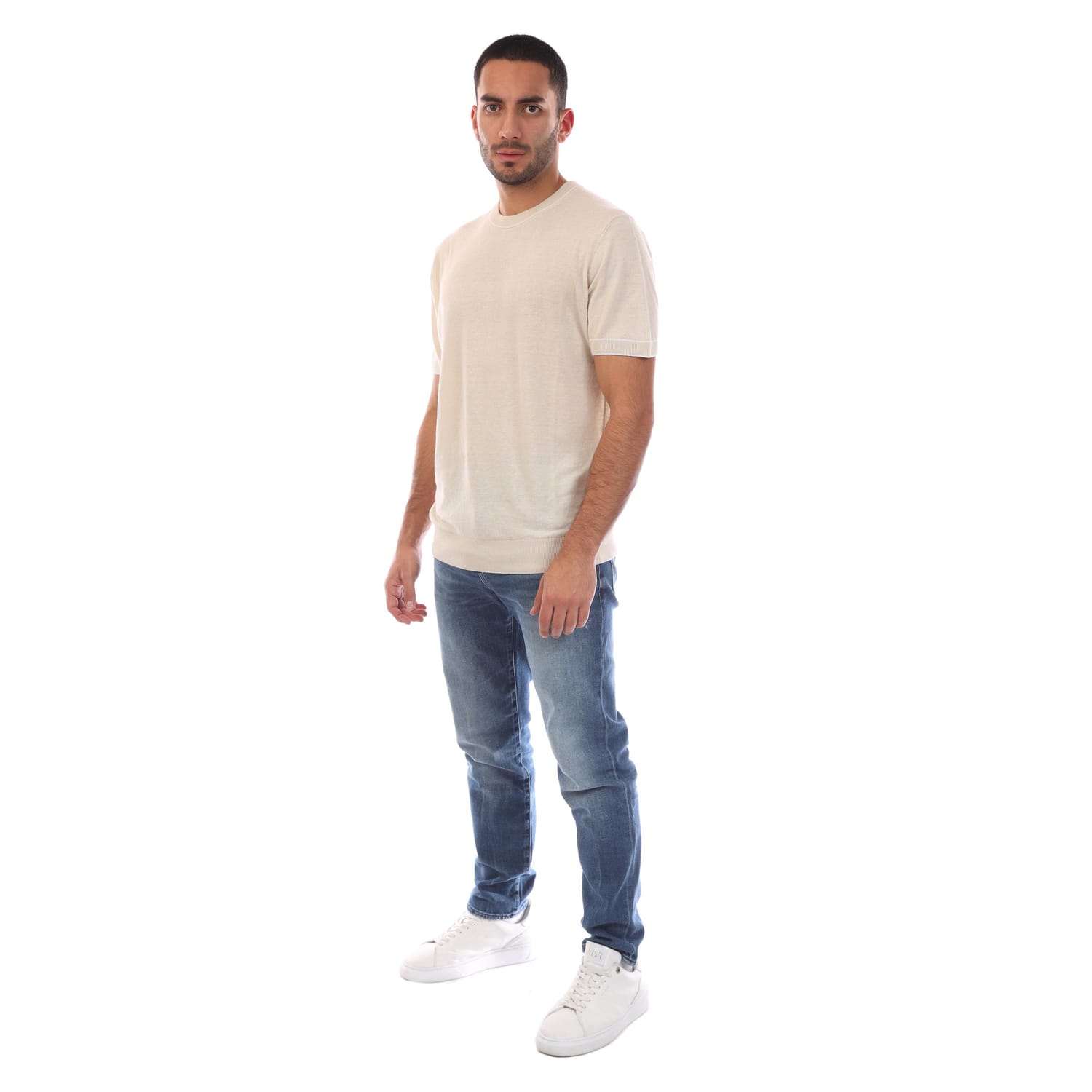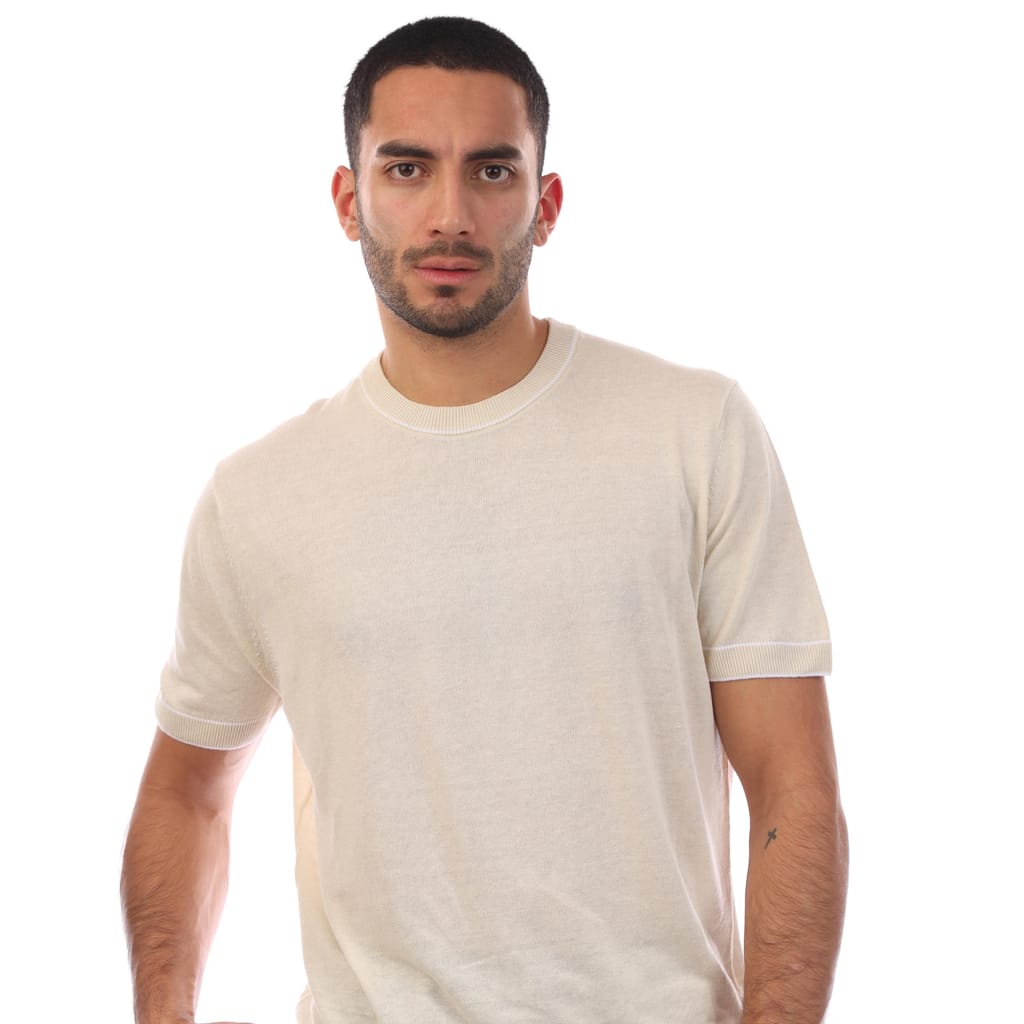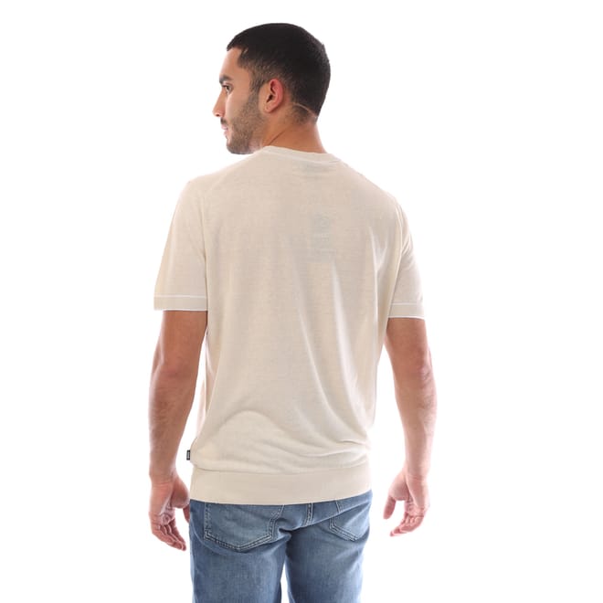 Mens BOSS H-Jiovanni Tipped Sweater in a Linen Blend in open white