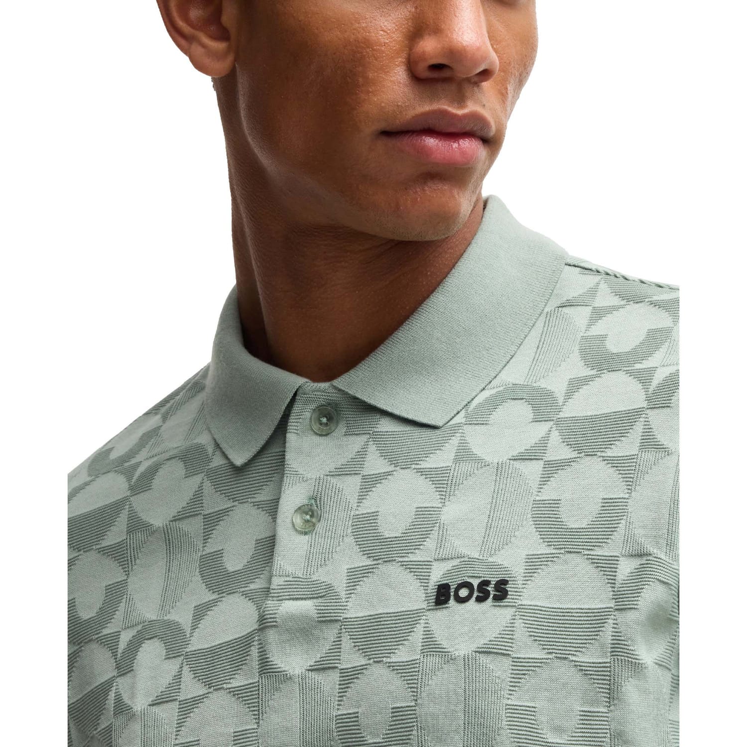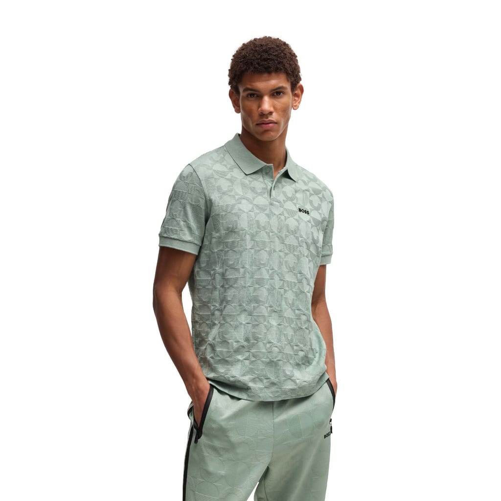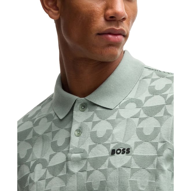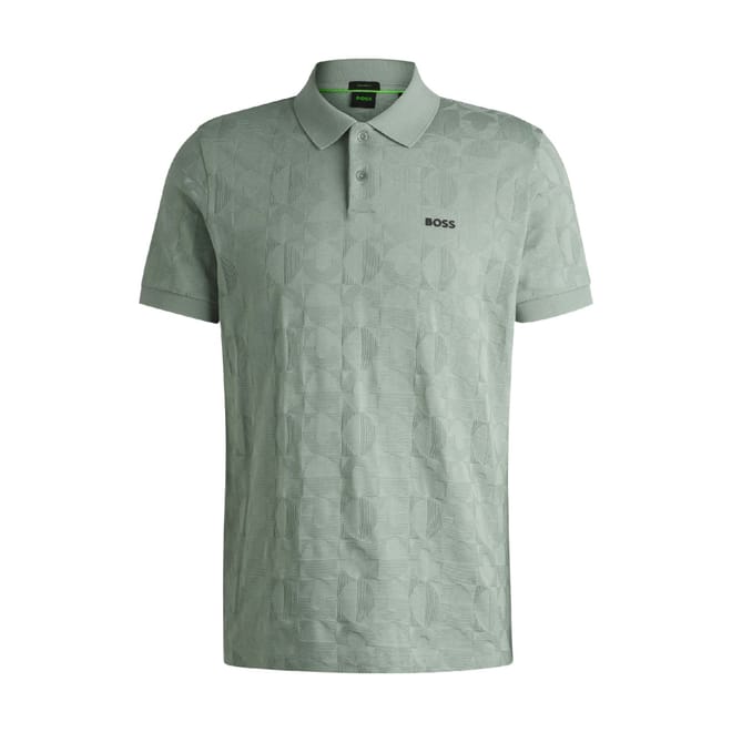 Mens BOSS Pirax Circle Jacquard Polo Shirt in Cotton in open green