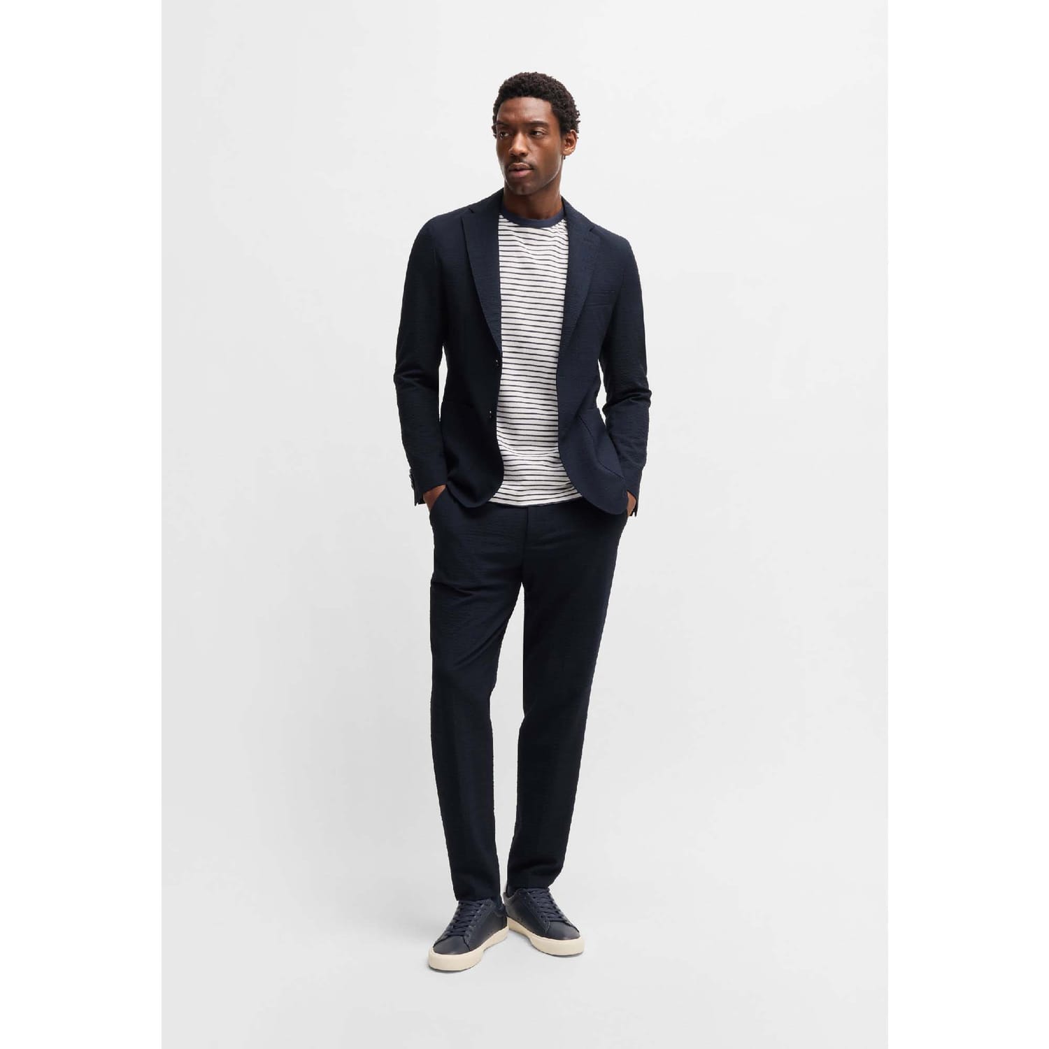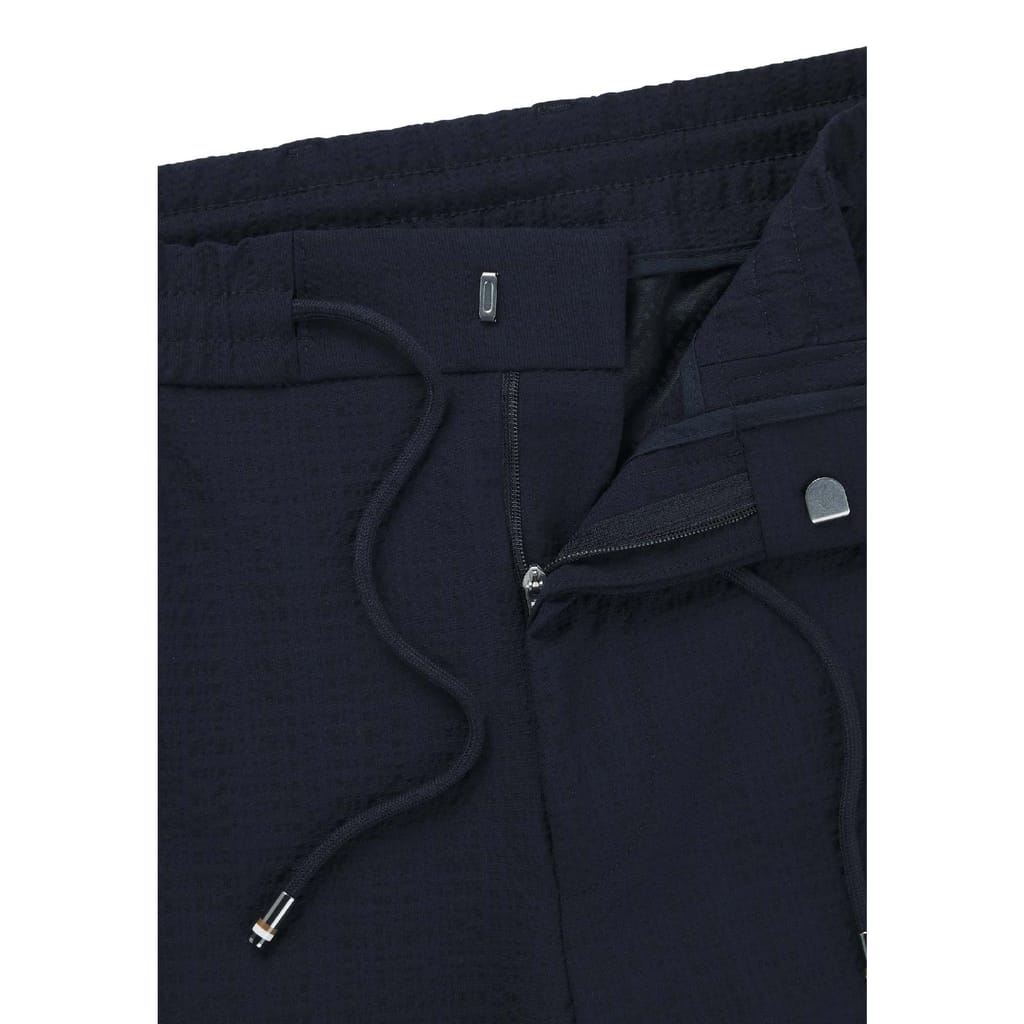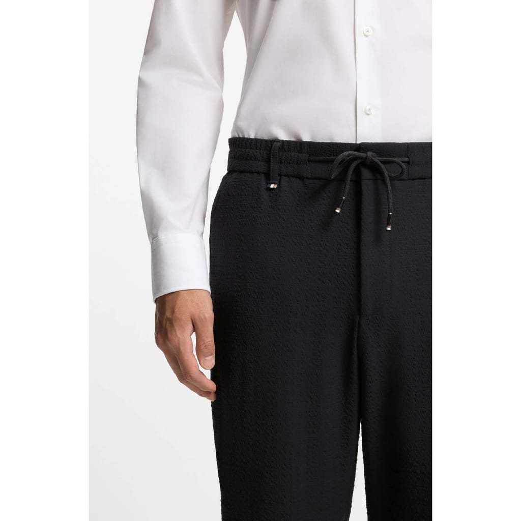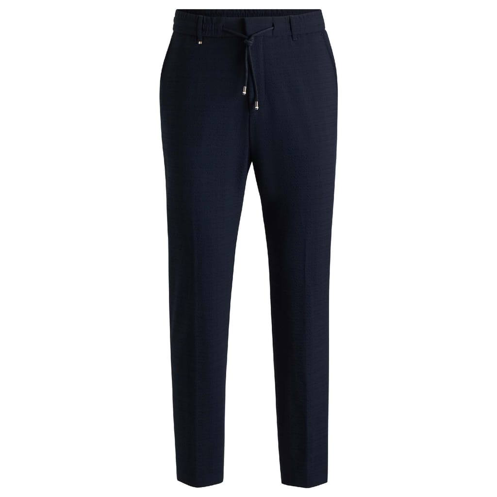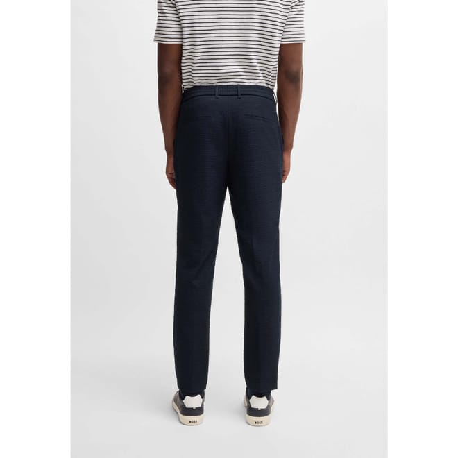 Mens BOSS Formal Trousers in Stretch Seersucker in dark blue