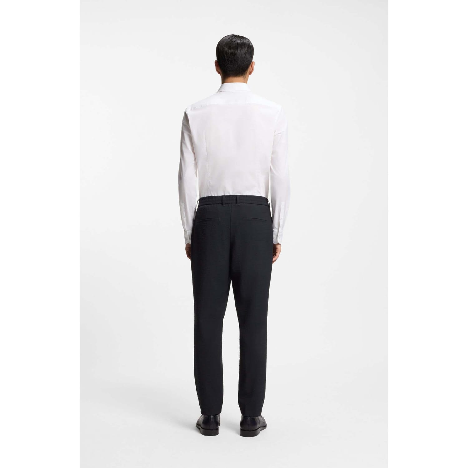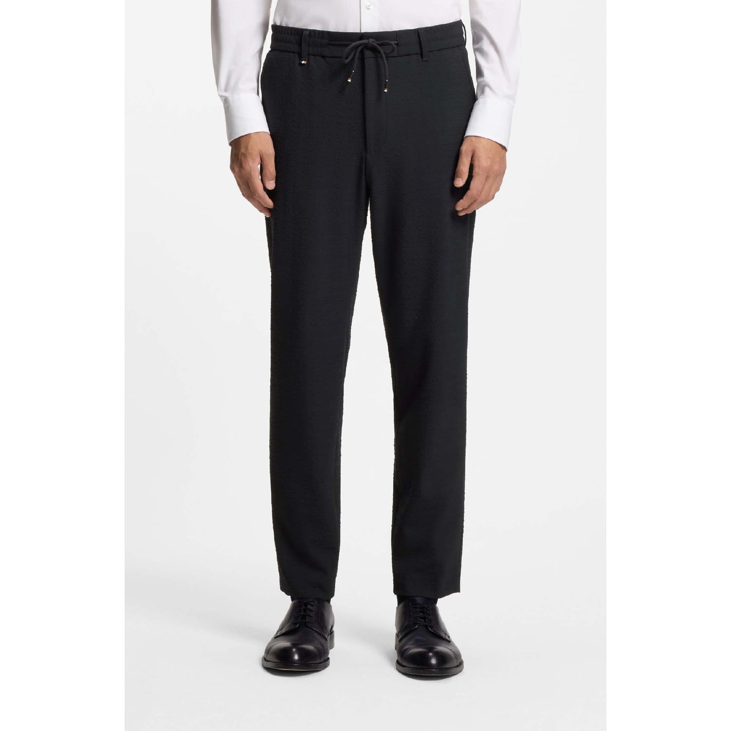 Guarantee a contemporary formal look with these BOSS Menswear trousers. Super-stretch seersucker with an adjustable comfort waistband. Clean front crease.
