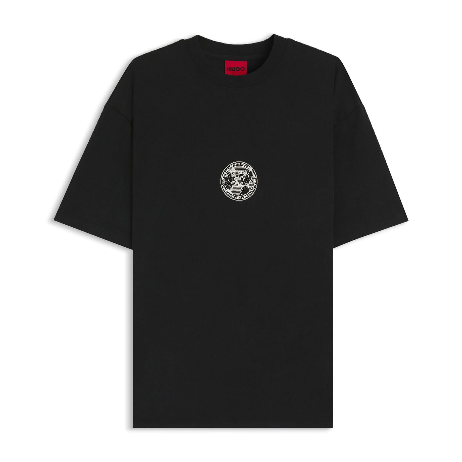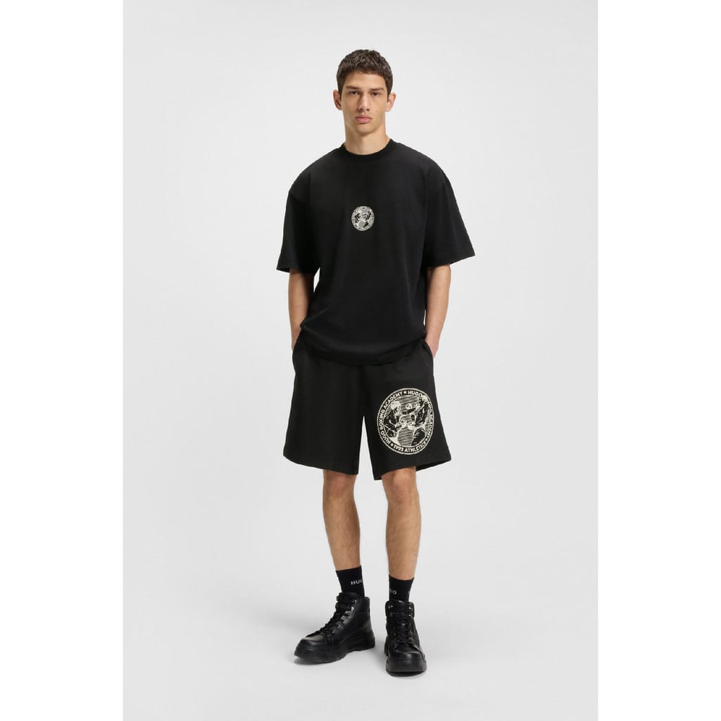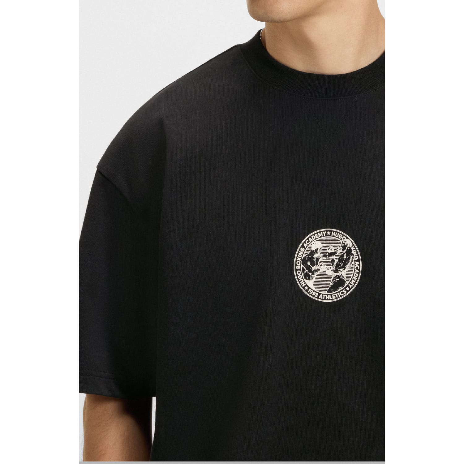 heavy weight short sleeve crew neck t-shirt / oversize fit / HUGO boxing academy puff print at back and locally at center chest / top stitch at v-notch / acid washed 100% Cotton -