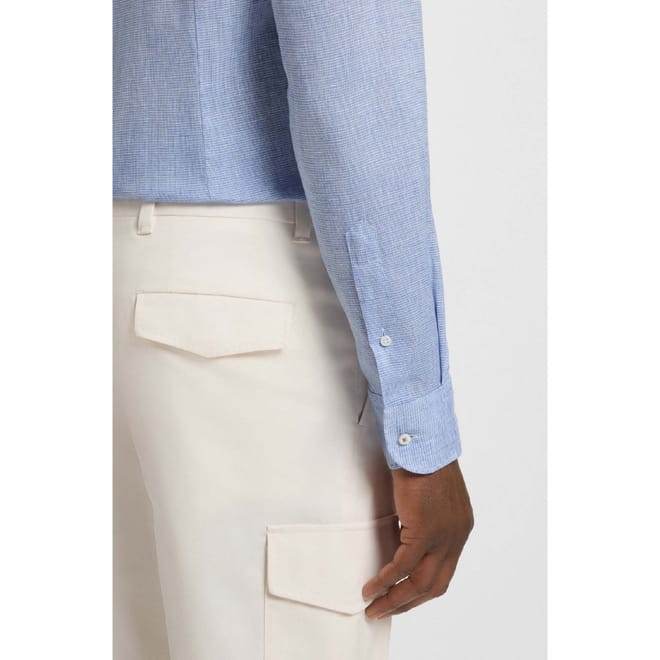 Mens BOSS L-Hays Slim Fit Shirt in Linen in turquoise / aqua