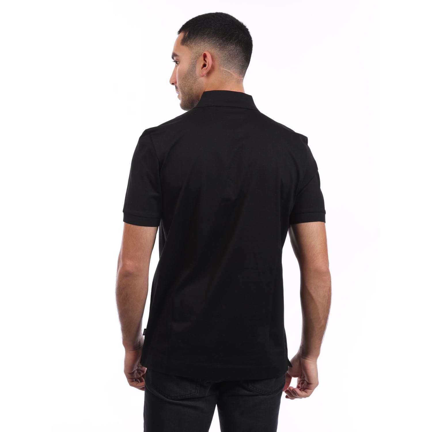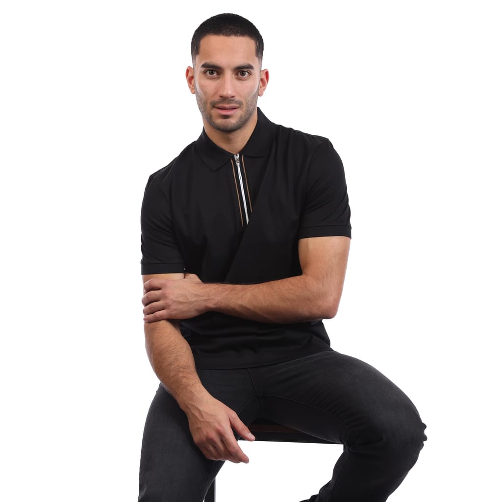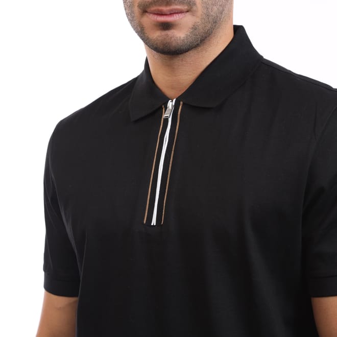 Mens BOSS H-Paras 65 Zip Placket Polo Shirt in Mercerised Cotton in black