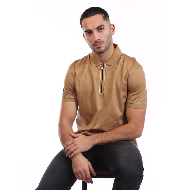 Mens Boss H-Paras 65 Polo Shirt in beige.