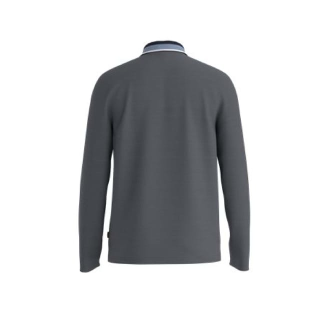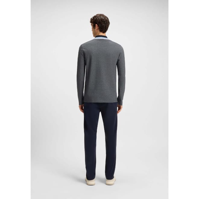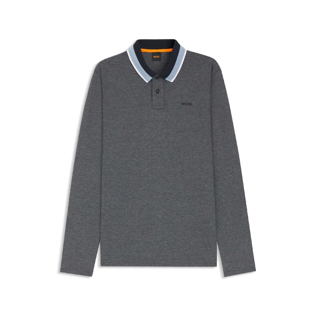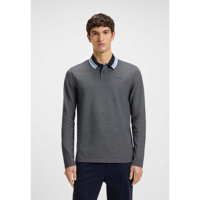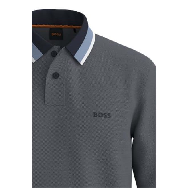 Mens BOSS Peoxfordlong Collar Stripe Polo Shirt in Cotton Piqué in dark blue