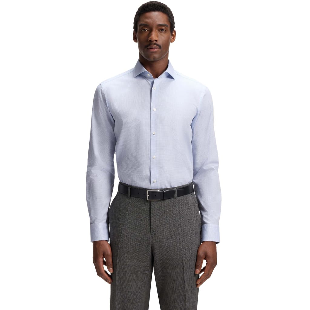 Woven with a rich structure, this BOSS Menswear shirt is an easy formal option. Cut to a straight fit in 100% cotton for natural comfort.
