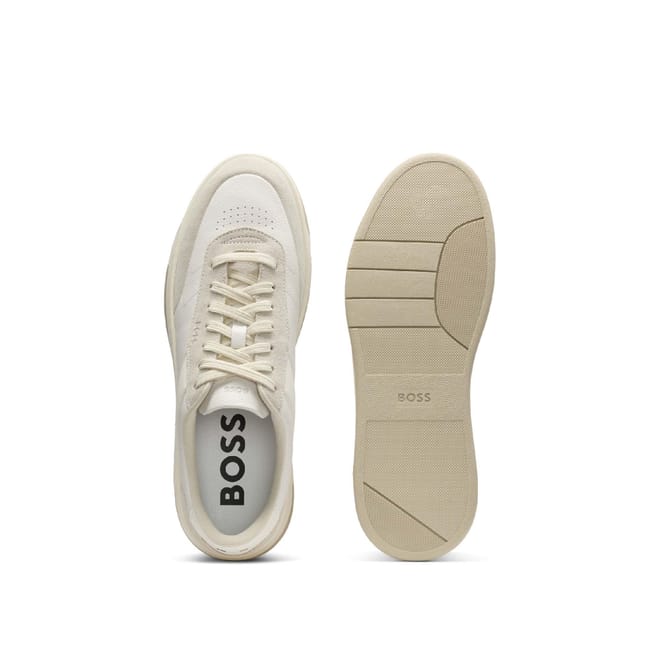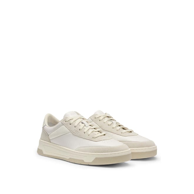 Mens BOSS Baltimore Low Top Trainers with Mixed Leather Uppers in open white