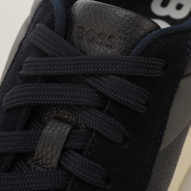Crafted in mixed leathers for a classic look, these BOSS Menswear trainers will go with any outfit. Logo details and supportive rubber outsole.