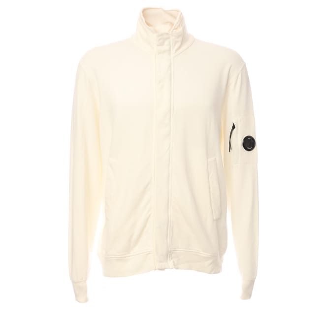 Mens C.P. Company Logo Fleece Standard Collar Sweatshirt in white.
