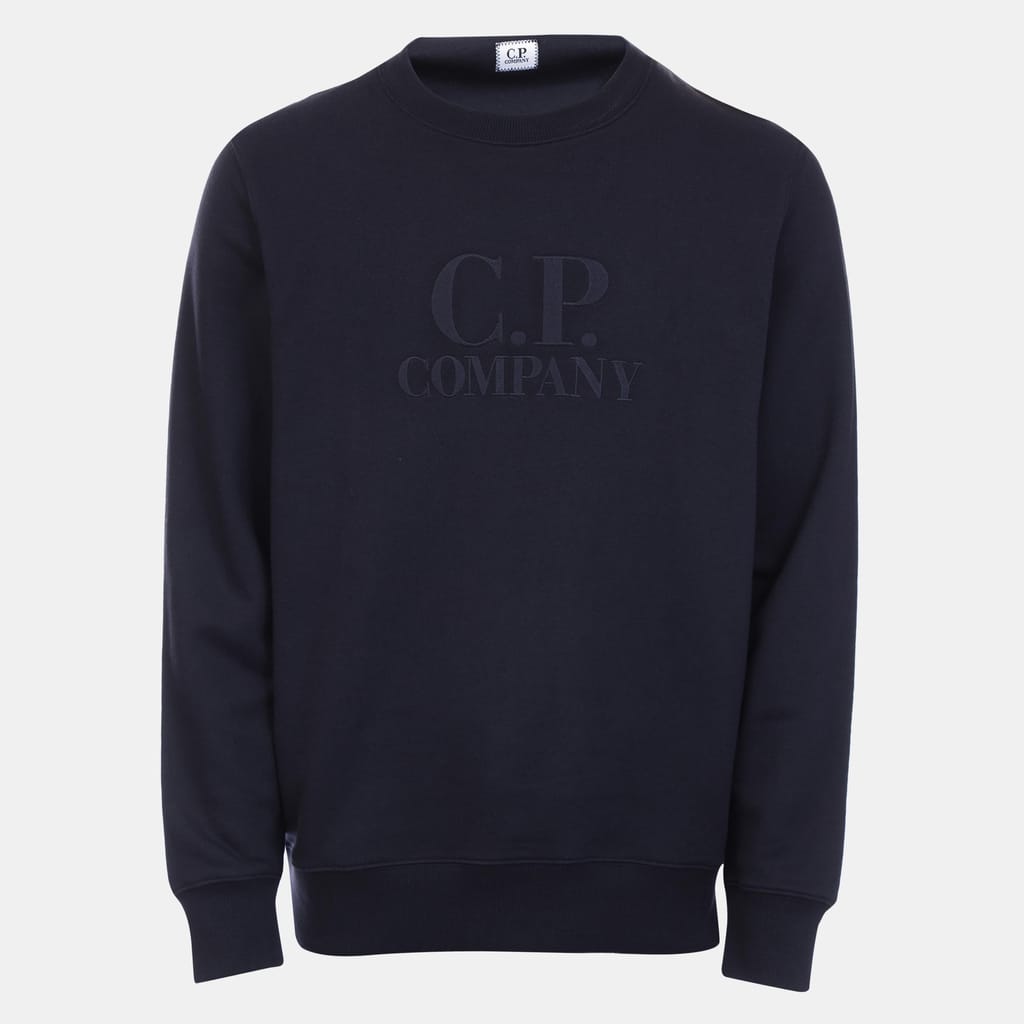Mens C.P. Company Diagonal Raised Fleece Sweatshirt in navy.