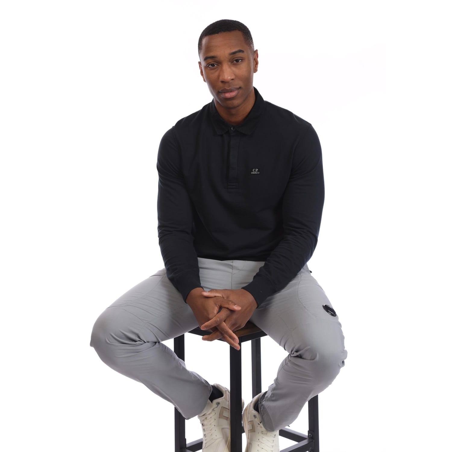 Mens C.P. Company Light Fleece Collared Sweatshirt in black.