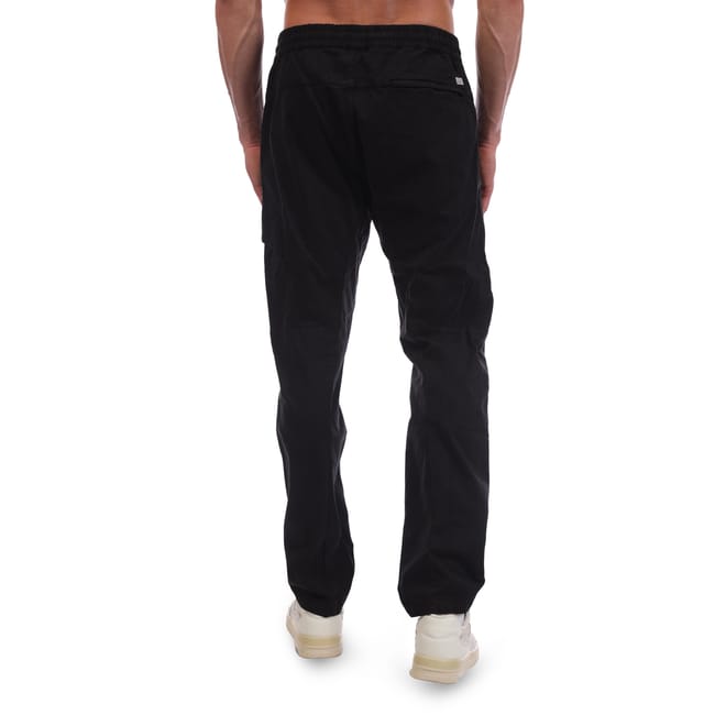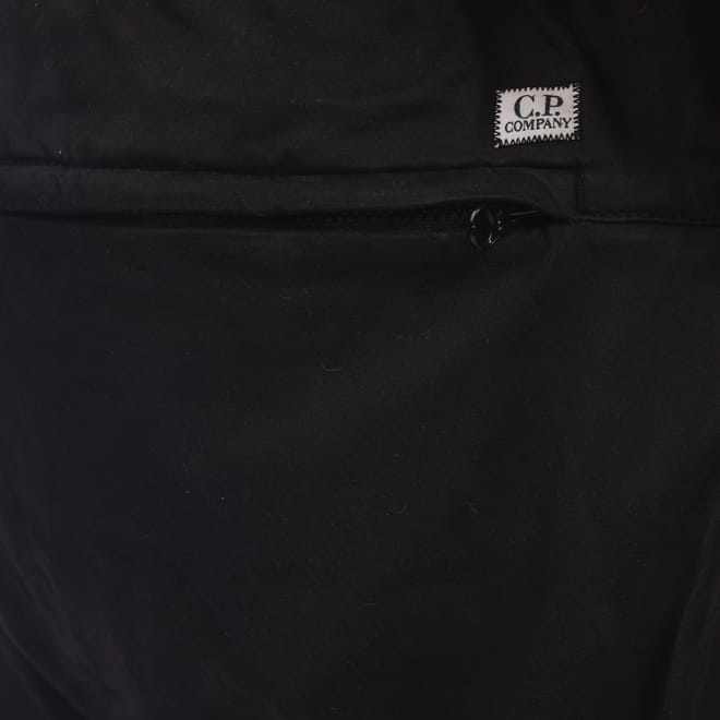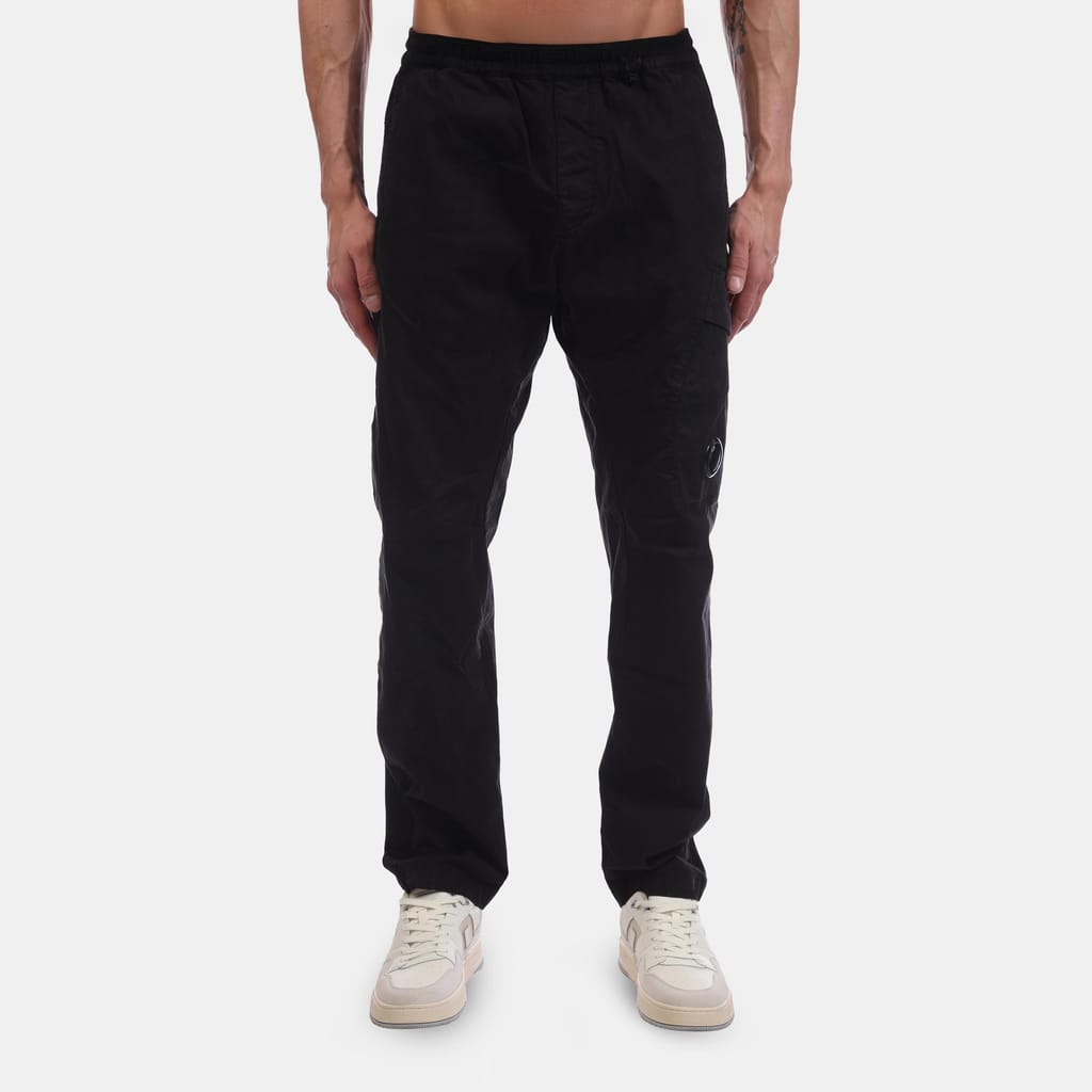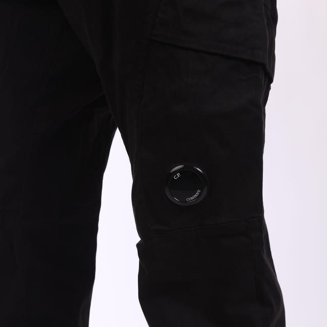 Mens C.P. Company Stretch Sateen Ergonomic Cargo Pants in black.