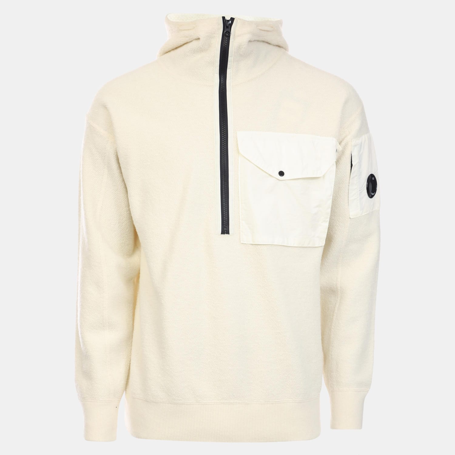 Mens C.P. Company Lambswool Mixed Hoodie in white.
