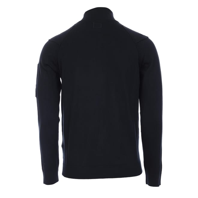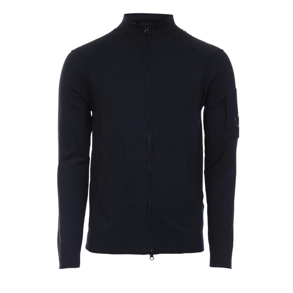 Mens C.P. Company Sea Island Zip Through Knitted Fleece in black.