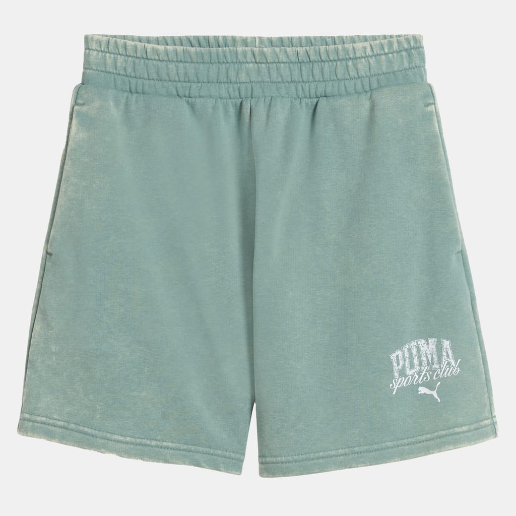 Step into vintage vibes with these PUMA shorts. Featuring a washed finish, graphic rubber print, and rib waistband with internal drawcords for a personalized fit. Side seam pockets keep your essentials close, making them perfect for any activity.