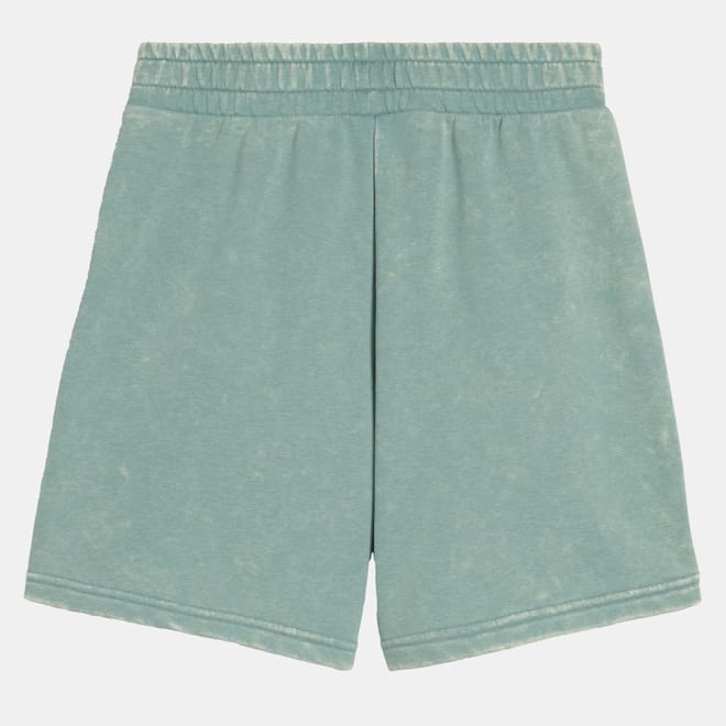 Womens PUMA Class 5 Inch Washed Shorts in green moon.