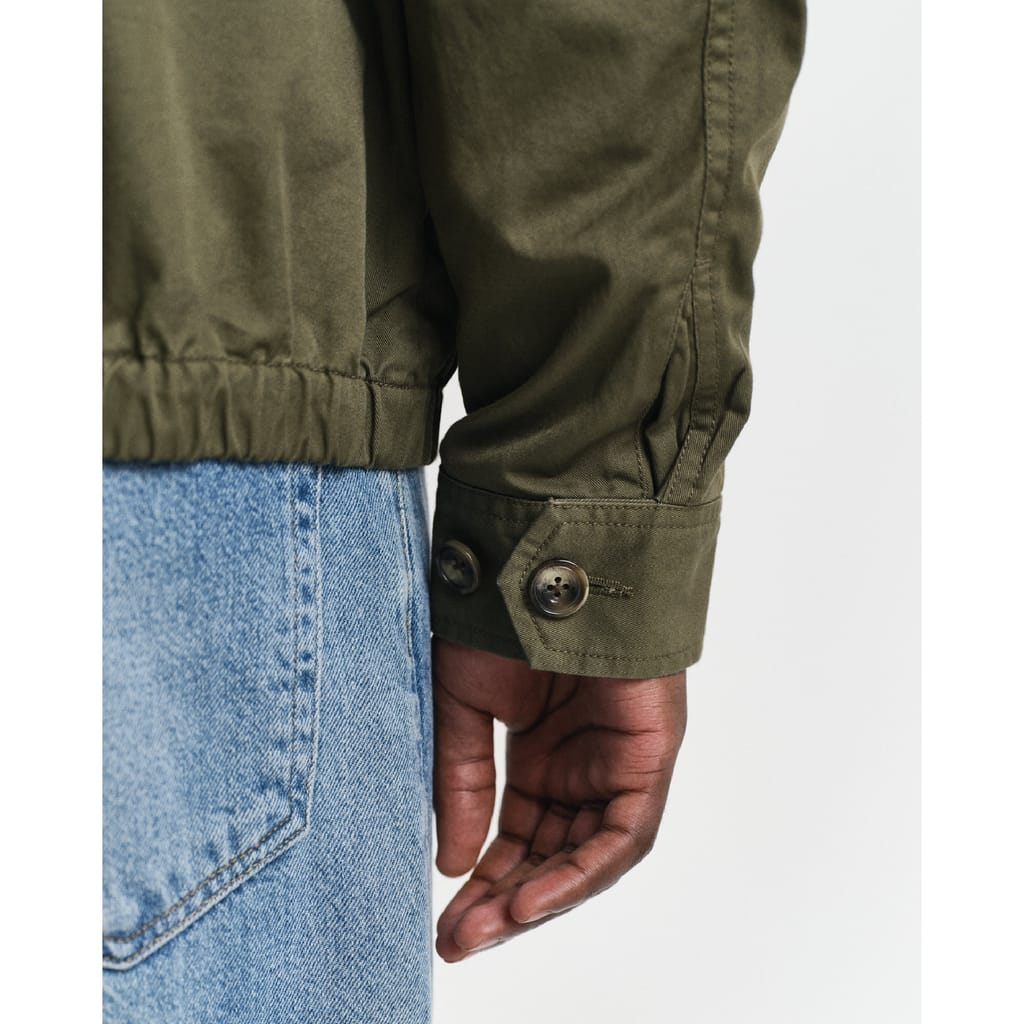 "This jacket takes inspiration from GANT's beloved windcheater design, incorporating updated elements for the new season. Crafted from a water-repellent cotton twill shell, it is half-lined to shield against the cold while ensuring breathability. Designed for a regular fit that sits just above the hips, it features a partly elasticated hem for added comfort. Additional details include a front zip closure with a leather extender, slanted side welt pockets with hidden press buttons, two interior jetted pockets, and buttoned cuffs. It is finished with logo embroidery at the chest and a signature branded locker loop at the back. This product is made with recycled polyester, aligned with our sustainability strategy to support circularity. This jacket features a Durable Water Repellent (DWR) treatment which will help to shed water in light weather conditions. If you're unexpectedly caught in a downpour, please follow the care instructions closely to restore the performance and prolong the life of this garment. " -