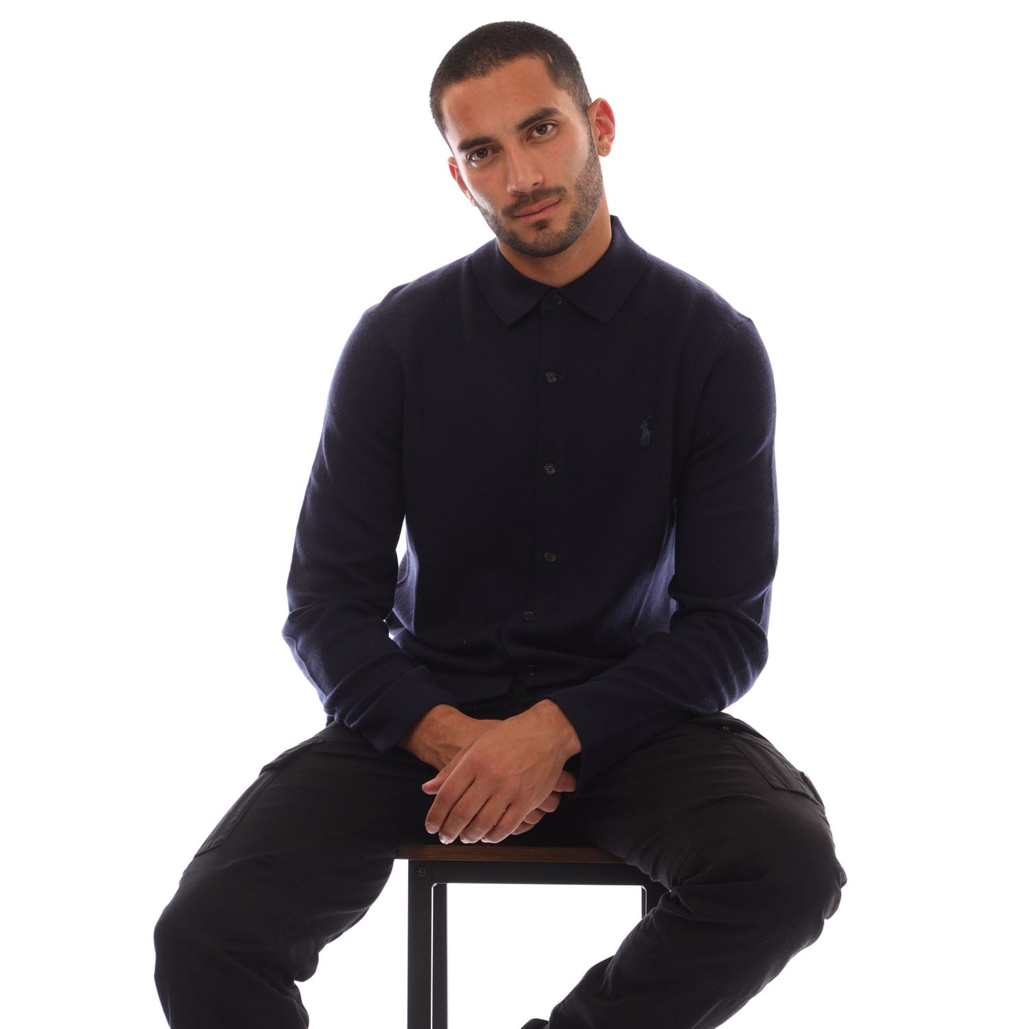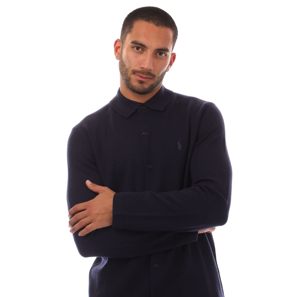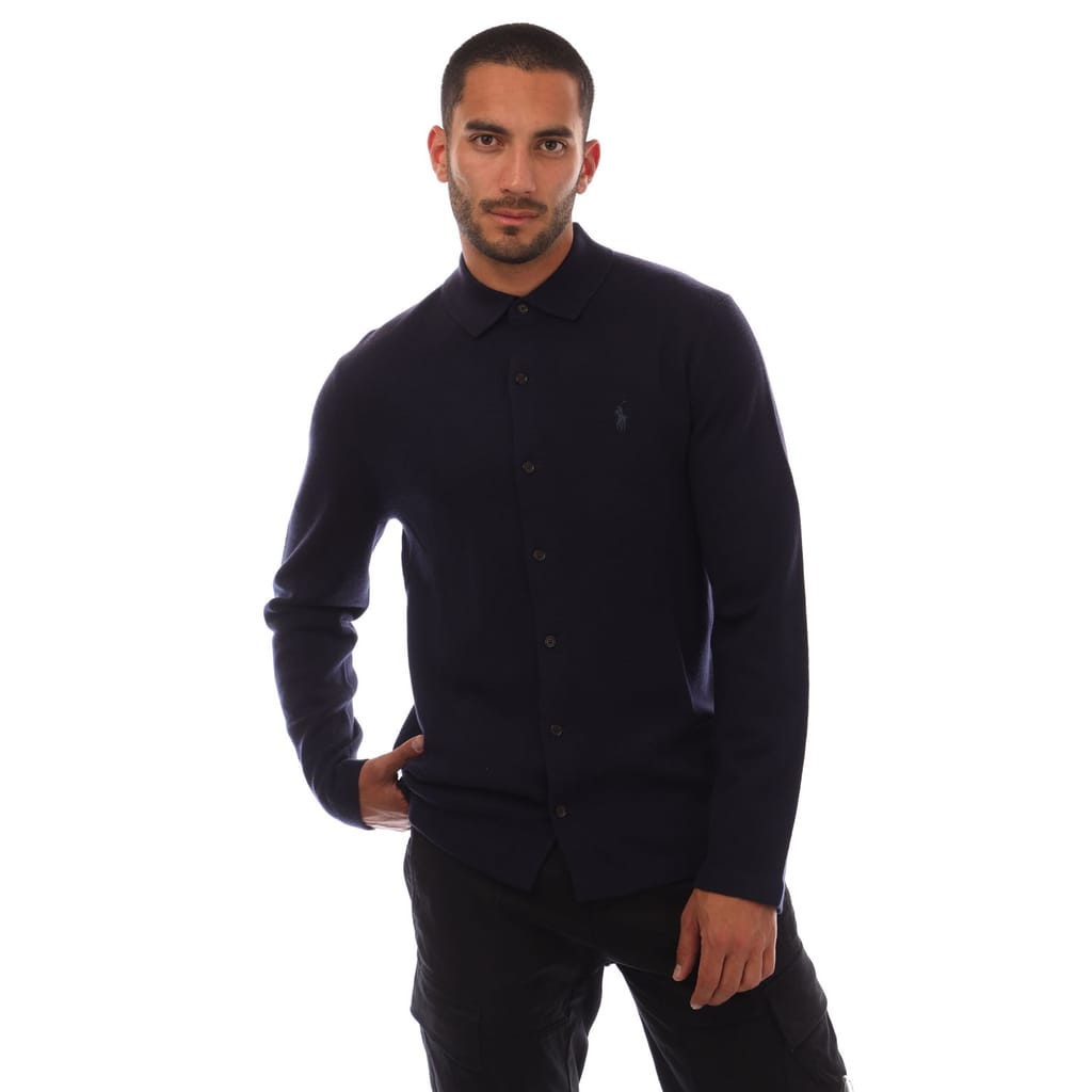 Mens Ralph Lauren Merino Wool Knit Shirt in blue.