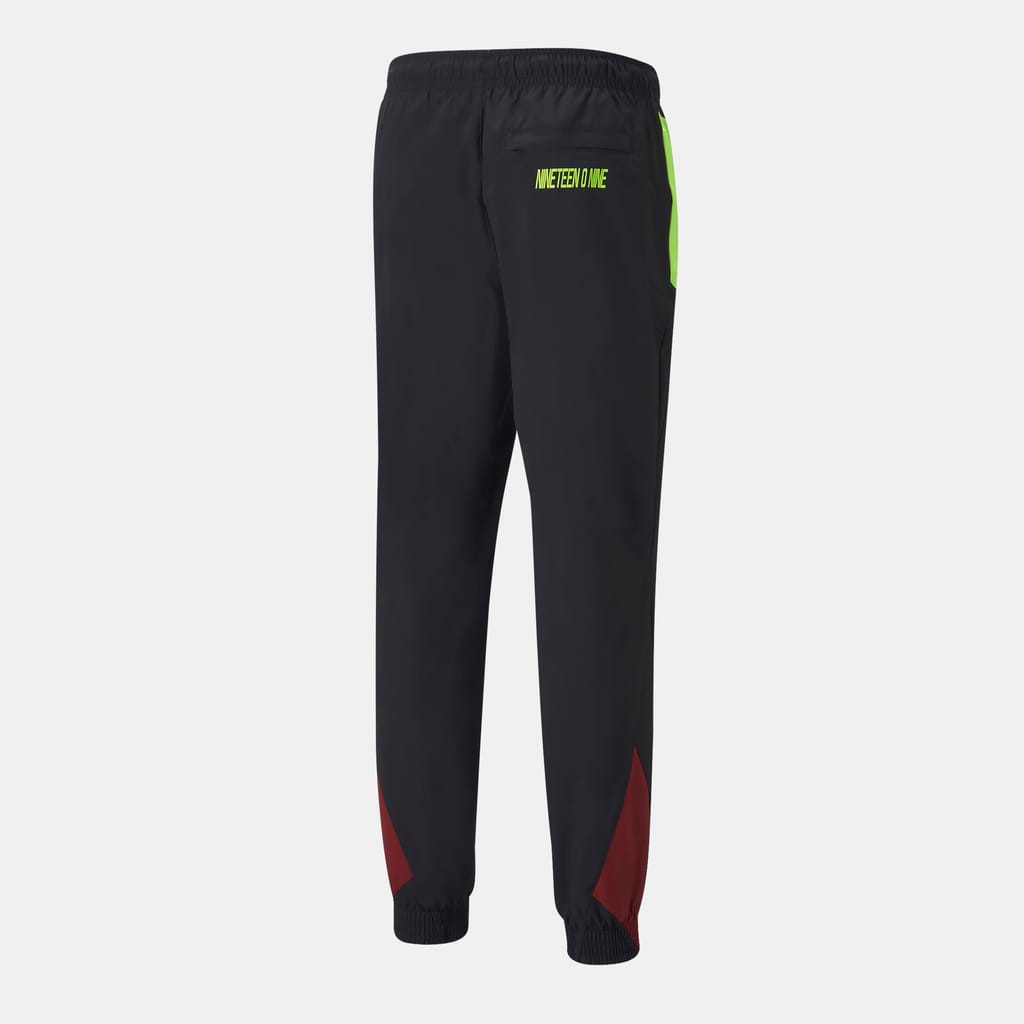 Mens PUMA Borussia Dortmund FC FtblStatement Woven Pants in black / intense red / safety yellow