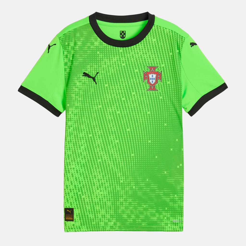 The Portugal 2025 Short Sleeves Goalkeeper Jersey for youth is designed for top performance on the pitch. Featuring PUMA’s dryCELL technology, it helps keep young players dry and comfortable by wicking away moisture during intense moments. Complete with the Portugal crest, this jersey lets aspiring goalkeepers showcase their skills while representing their team with pride.