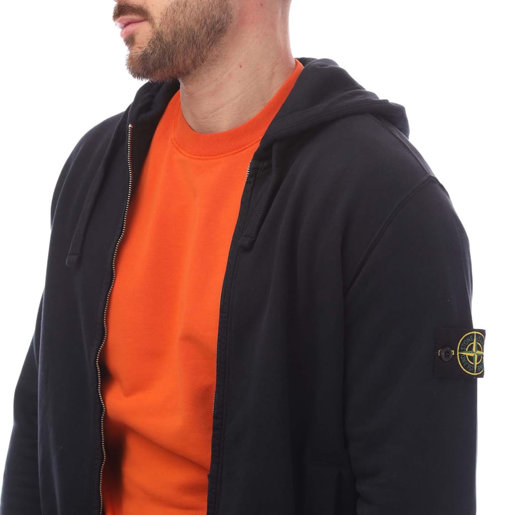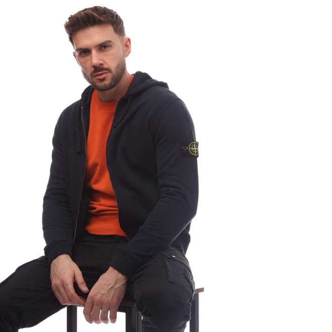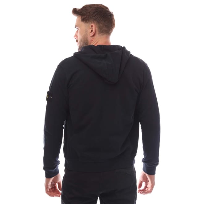 Mens Stone Island Compass Badge Full-Zip Hoodie in navy blue.