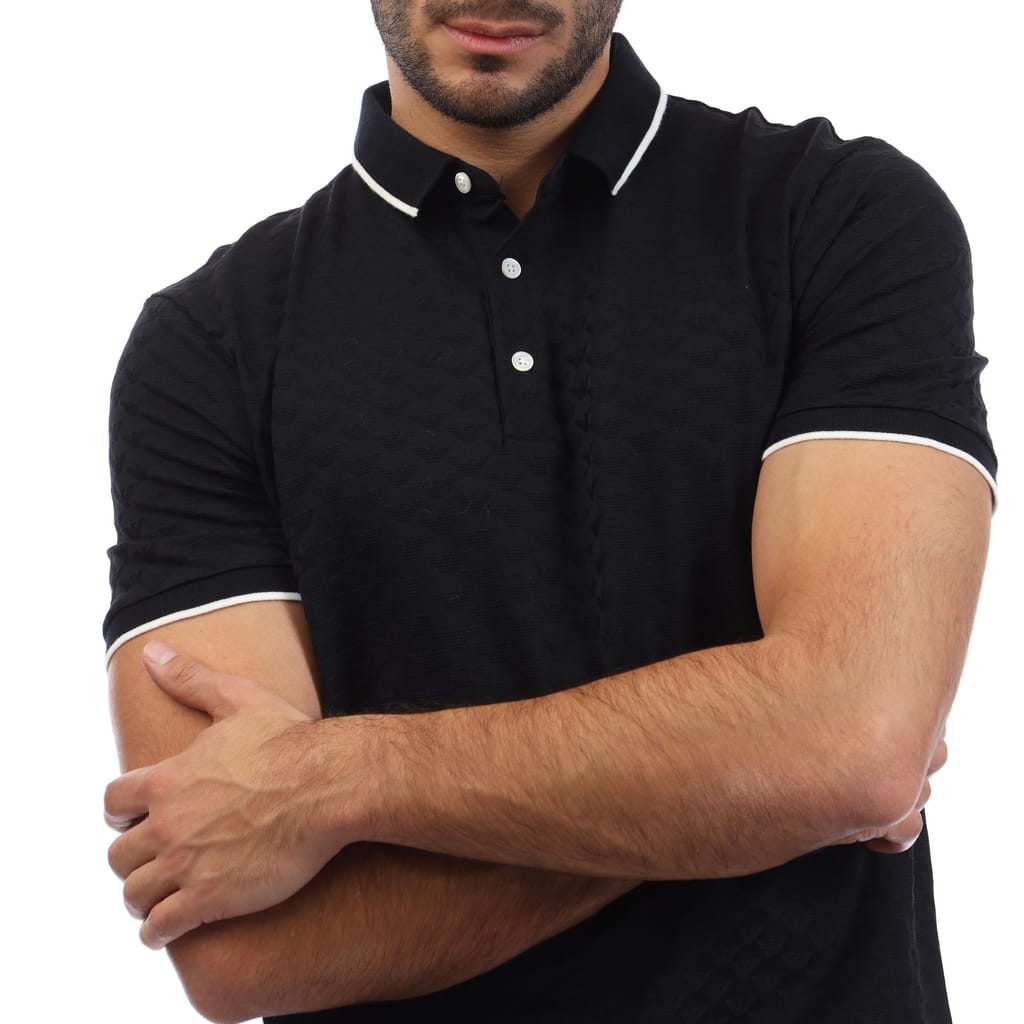 Mens Emporio Armani All-over Jacquard Eagle Polo Shirt in navy.