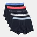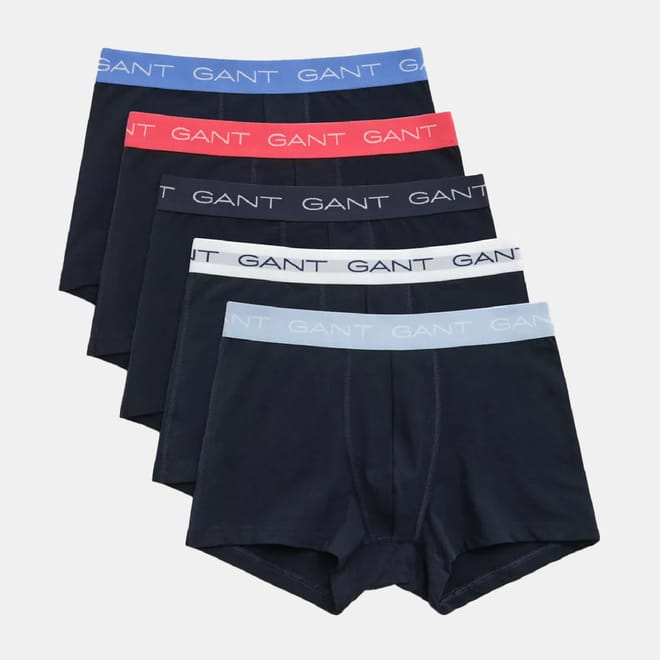 GANT's underwear delivers supportive, comfortable fits in high-quality fabrics. This five-pack of trunks, crafted from cotton jersey with a hint of stretch, is designed for a slim fit with a short leg length and a regular waist. Each trunk features a jacquard-knitted elastic waistband detailed with repeating GANT logos. This product is made with a majority of organic cotton. Organic cotton reduces the environmental footprint and promotes safe work and better livelihoods. -