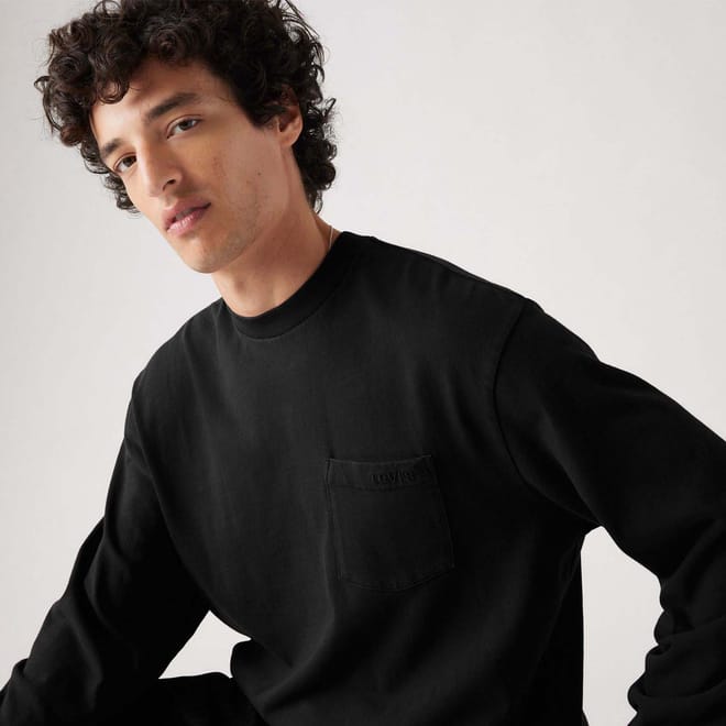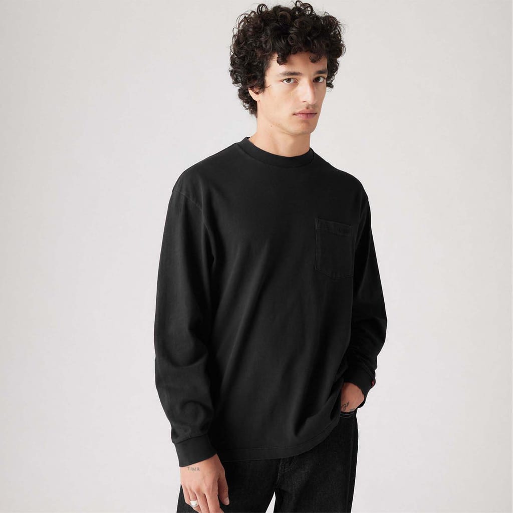 Mens Levis Authentic Pocket Long Sleeve T-Shirt in black.