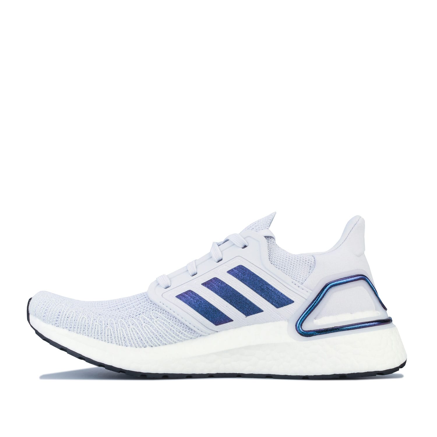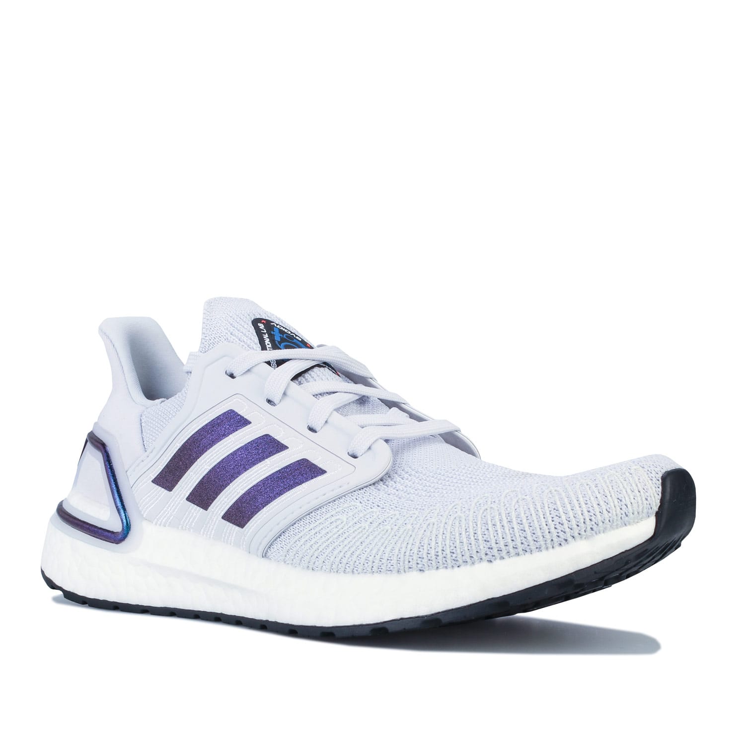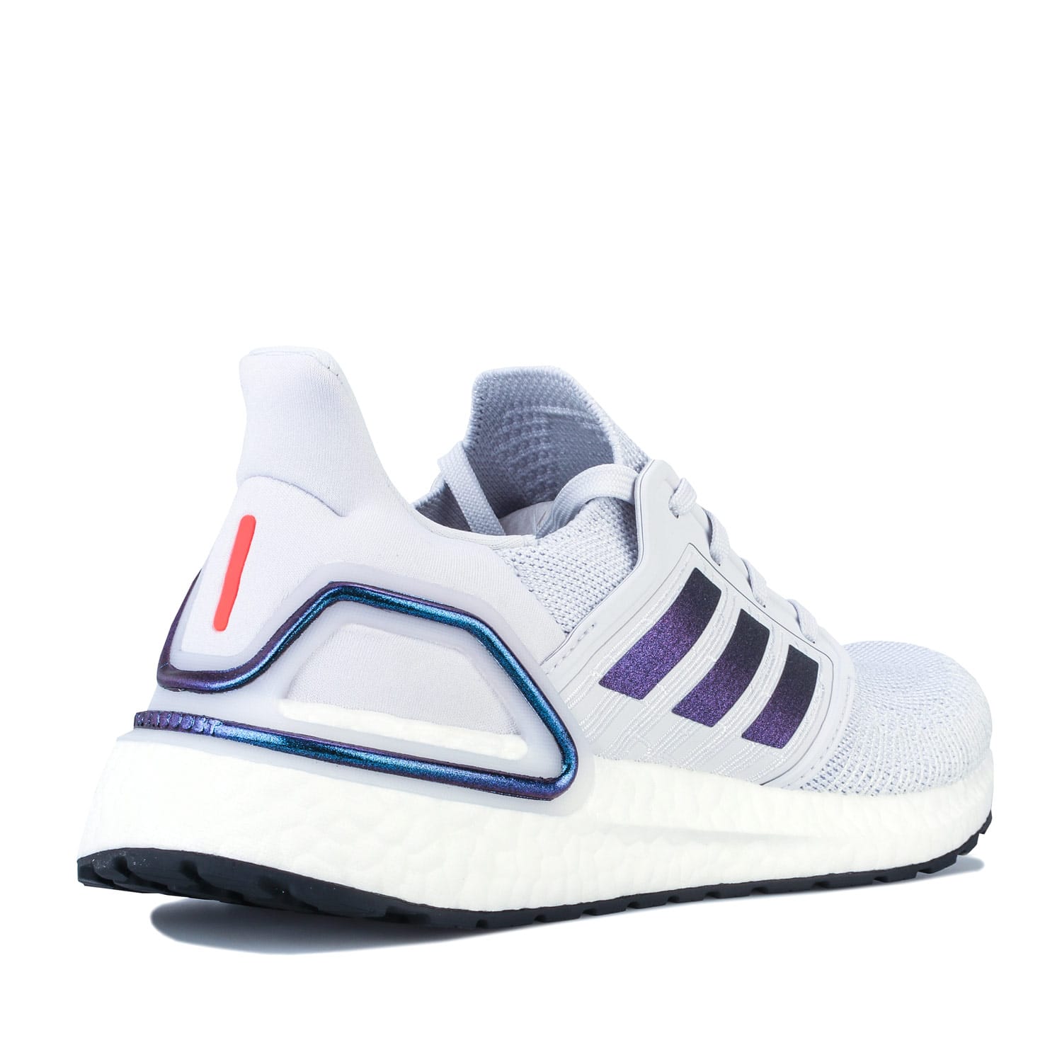 Womens adidas Ultraboost 20 Running Shoes in dash grey / boost blue violet metallic / core black.