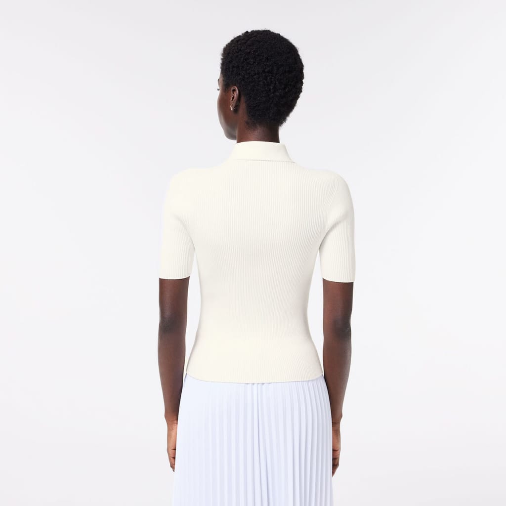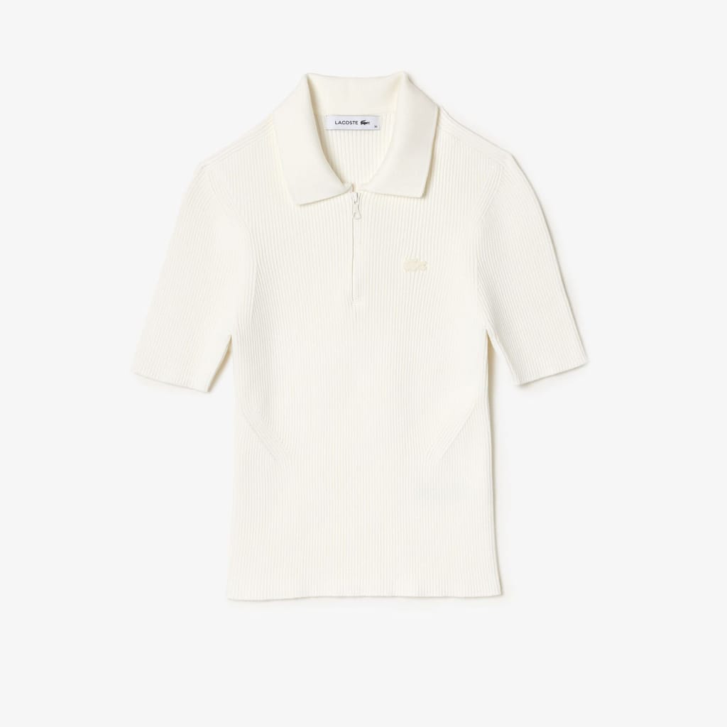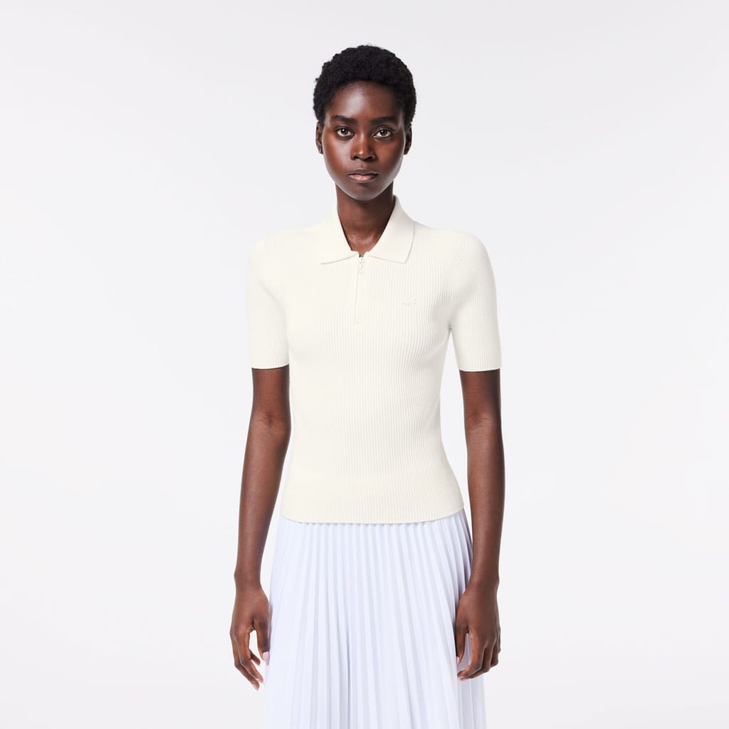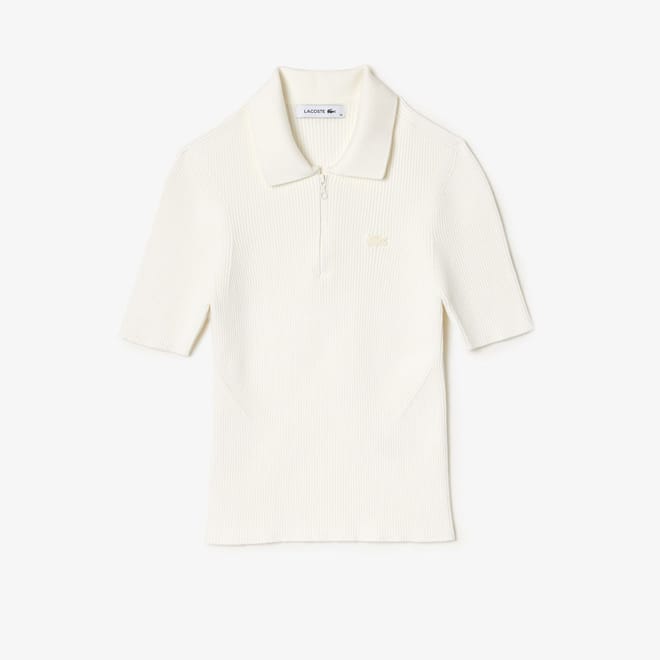 Womens Lacoste Zip Neck Rib Knit Polo Shirt