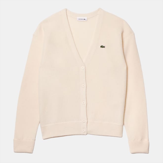 Womens Lacoste Essentials Cardigan in cream.