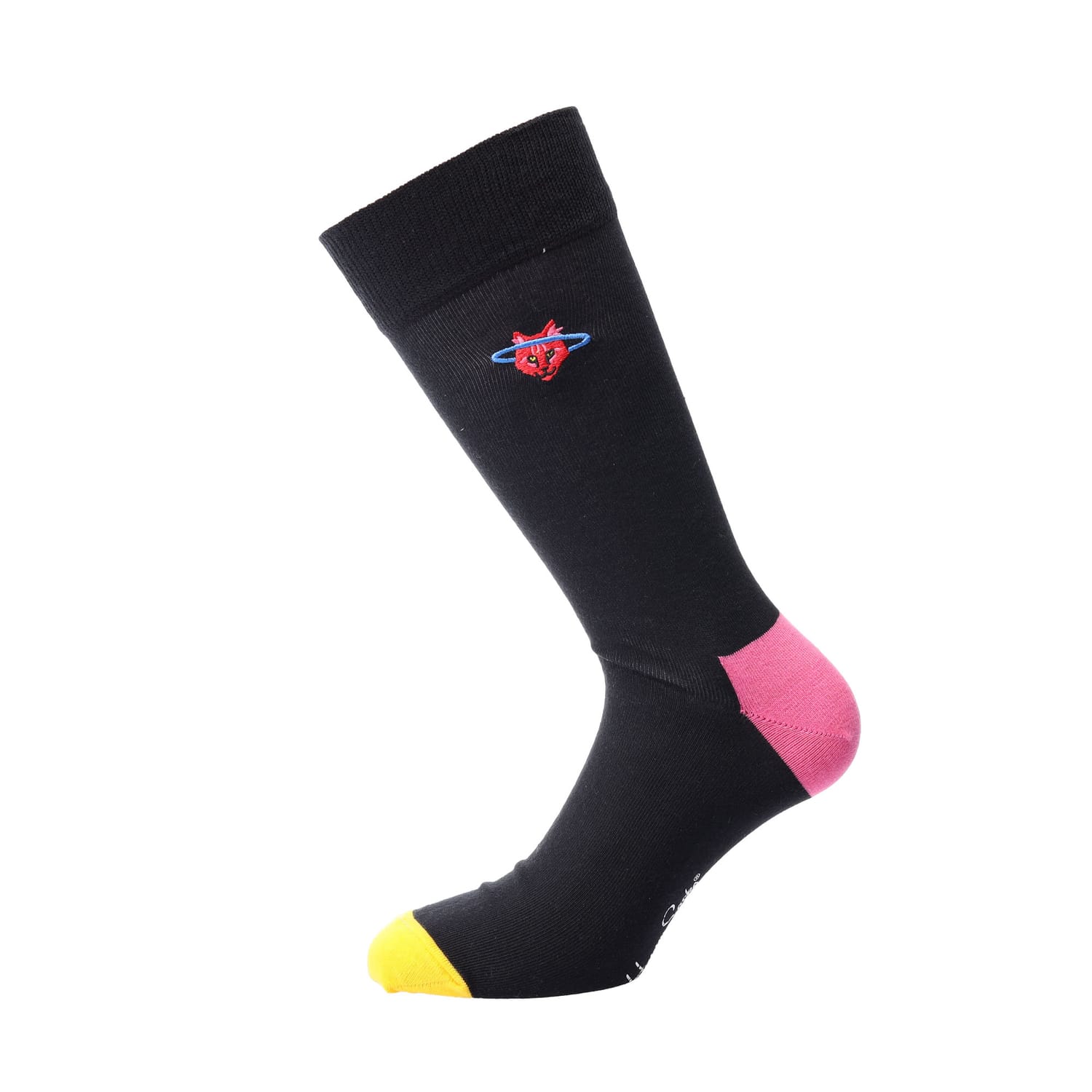 Happy Socks Embroidery Space Cat Crew in black.