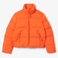 Womens Lacoste Relaxed-Fit Hooded Down Jacket in orange.