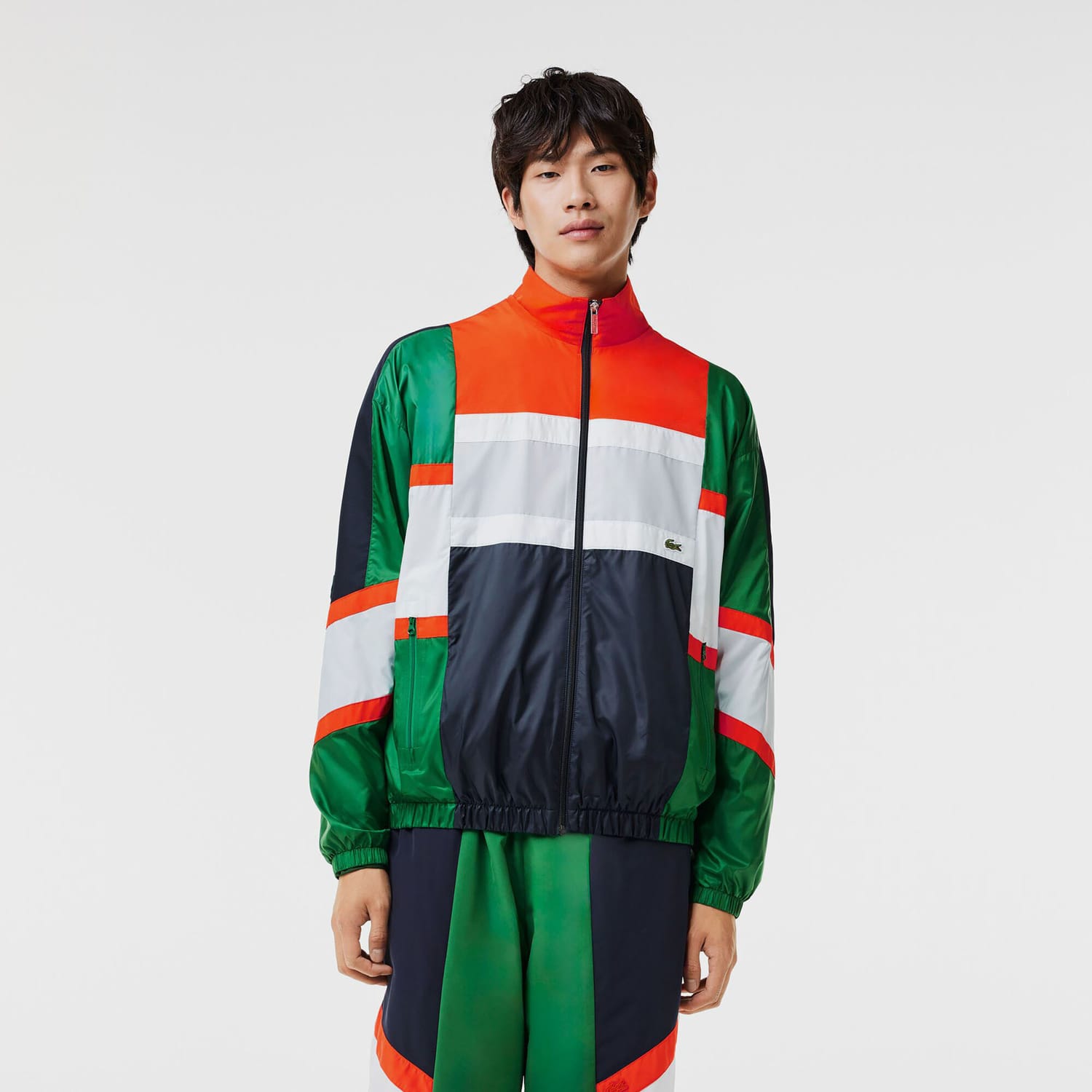 Mens Lacoste Mixed Material Colour-Block Sportsuit Jacket in green.